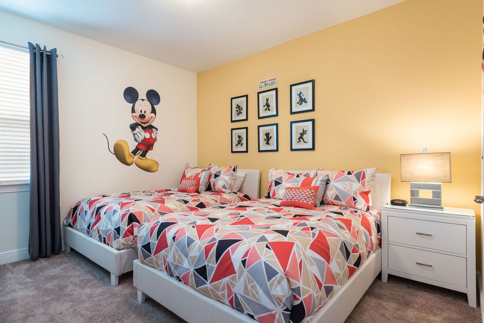 'Mickey Mouse' themed bedroom with 2x Full sized beds