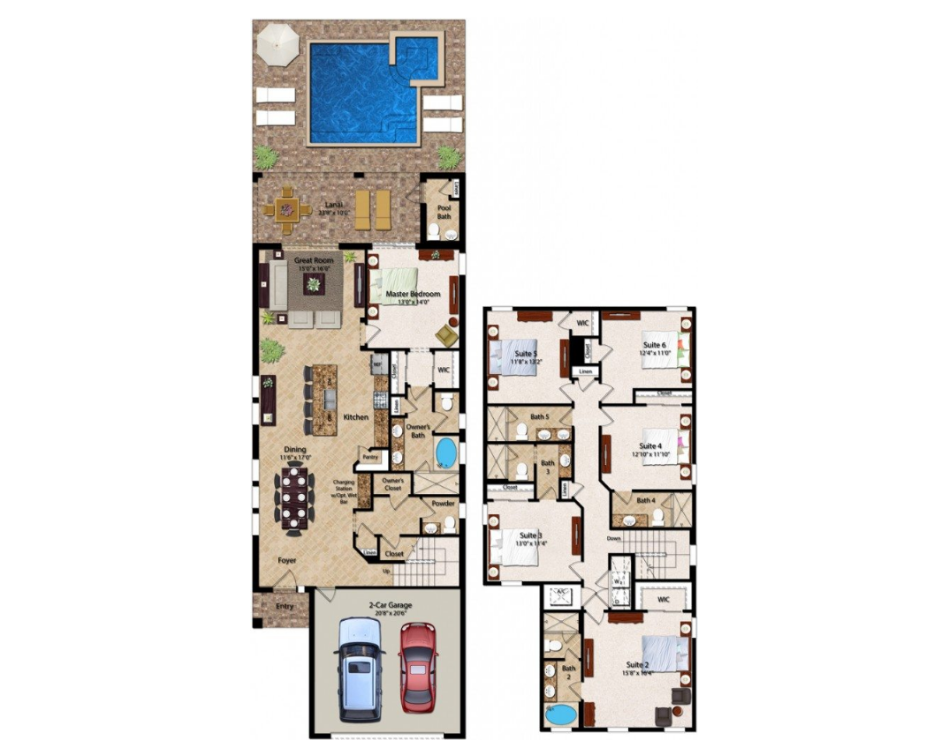 This home is a perfect option for families and friends in search of a spacious vacation home with 6 luxury bedrooms and a private pool right near Walt Disney World!