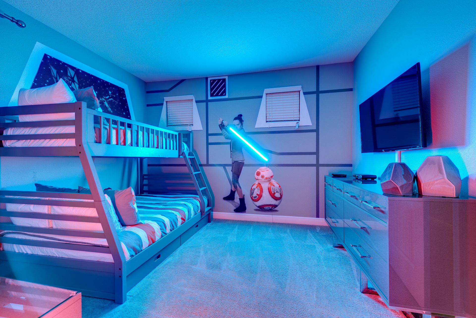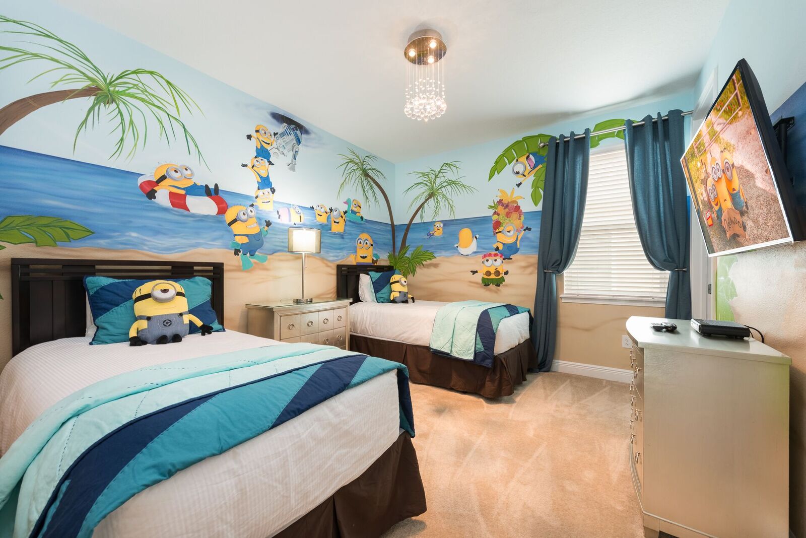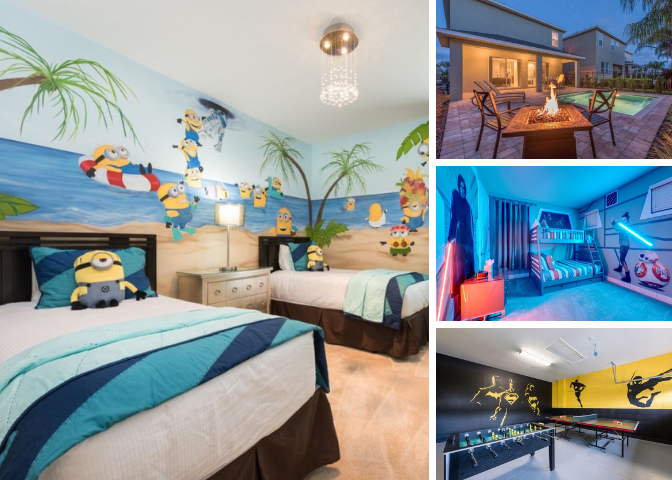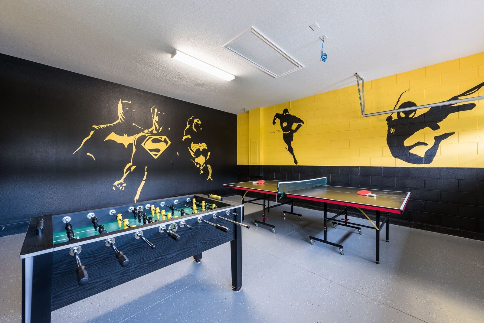 With this home, you will find spacious living quarters as well as a cozy and comfortable feel, like your home away from home. It includes it's own private swimming pool right outside your patio doors as well as 2 children's themed bedrooms! Also the Superhero games room has a ping pong and foosball table to entertain the whole family for hours.