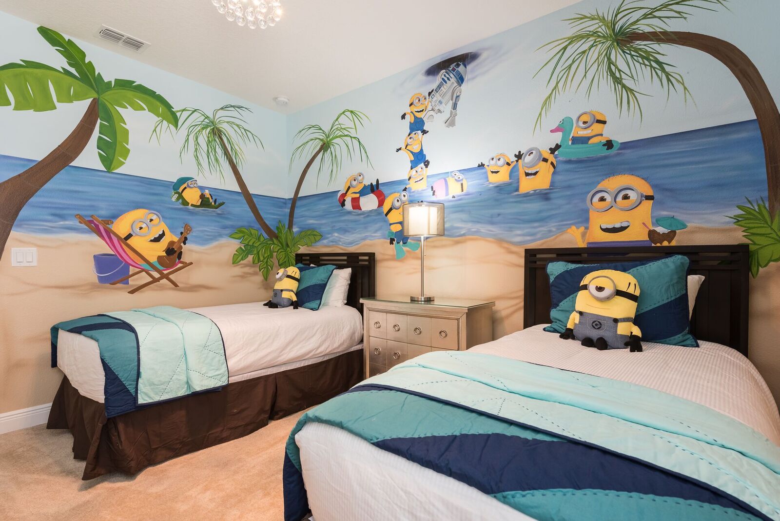Themed bedroom with 2x Twin sized beds and an en suite (shower)