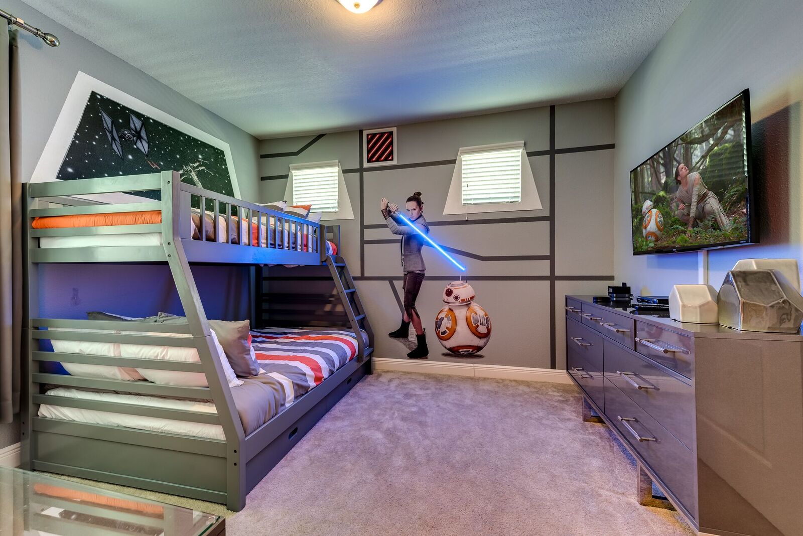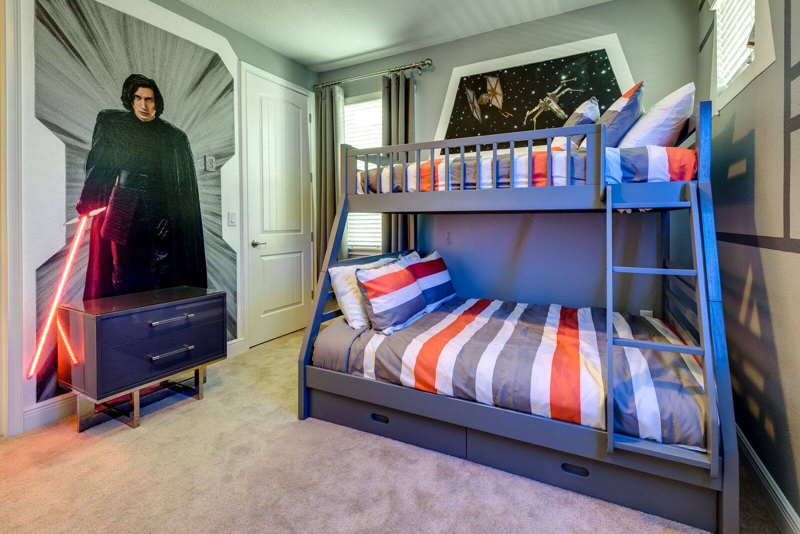Themed bedroom with bunk beds (Twin/Full sized beds) and an en suite (shower)