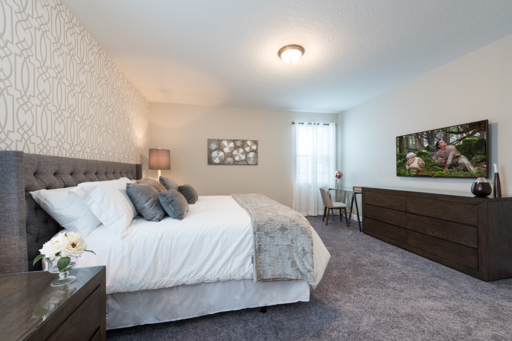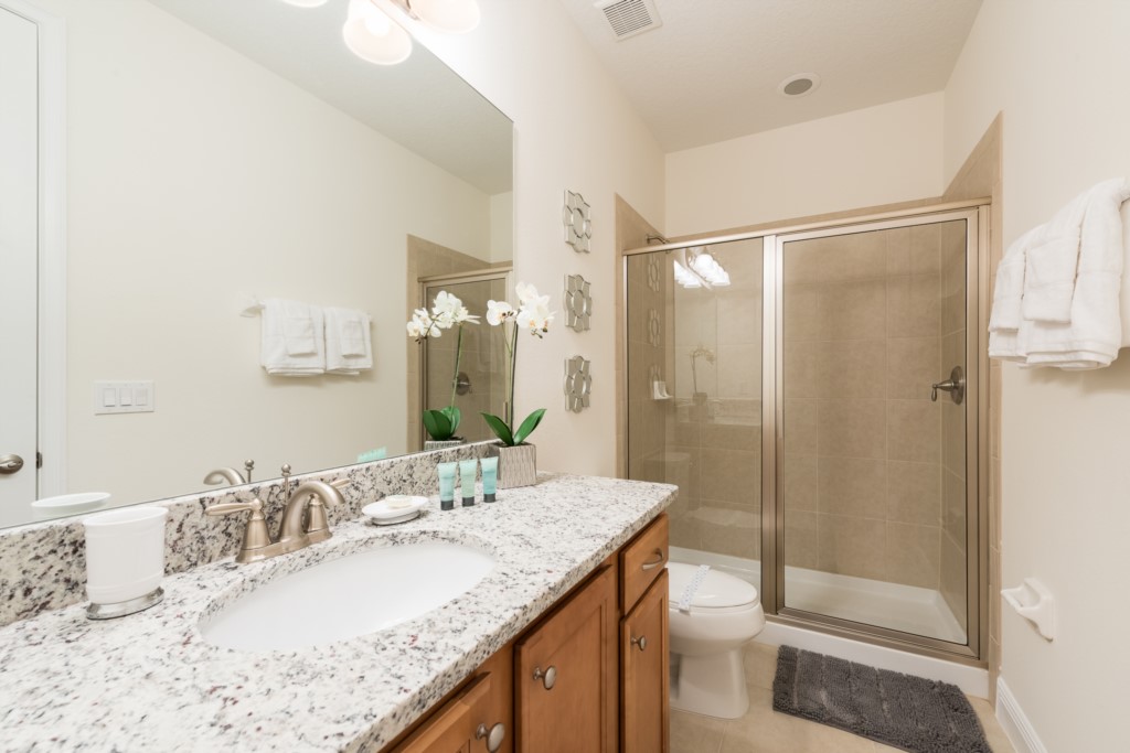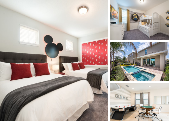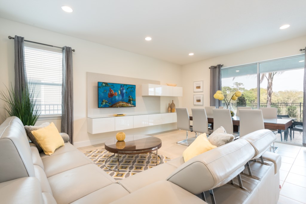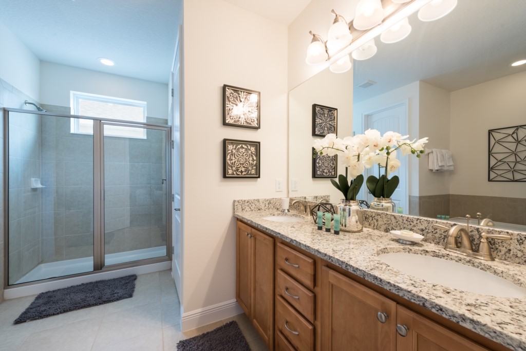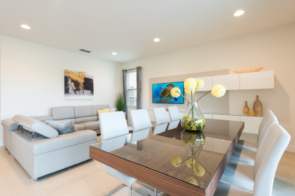 This modern 5 bedroom villa is situated in a prime Orlando location, the Encore Club! The Encore Club is less than a 10 minute drive to Walt Disney World and offers on property amenities such as their clubhouse with a bar, restaurant, and fitness center as well an Aqua Park with twisting and drop slides!