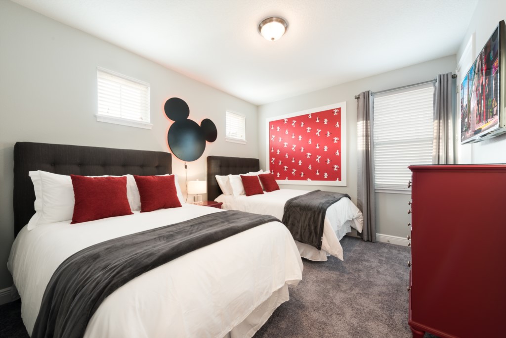 'Mickey Mouse' themed bedroom with 2x Full sized beds and an en suite (shower)