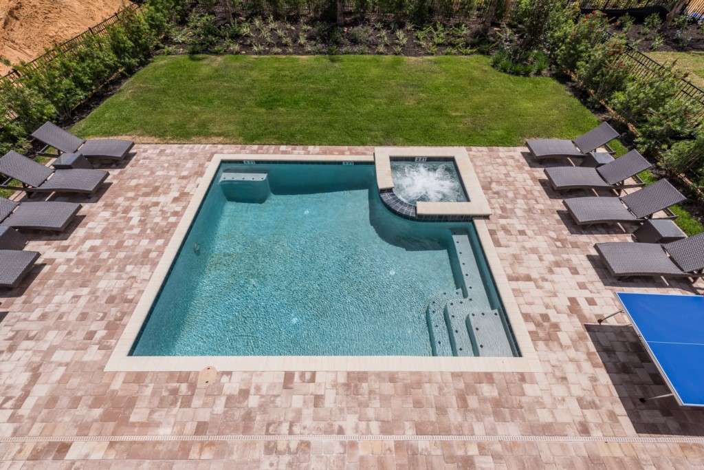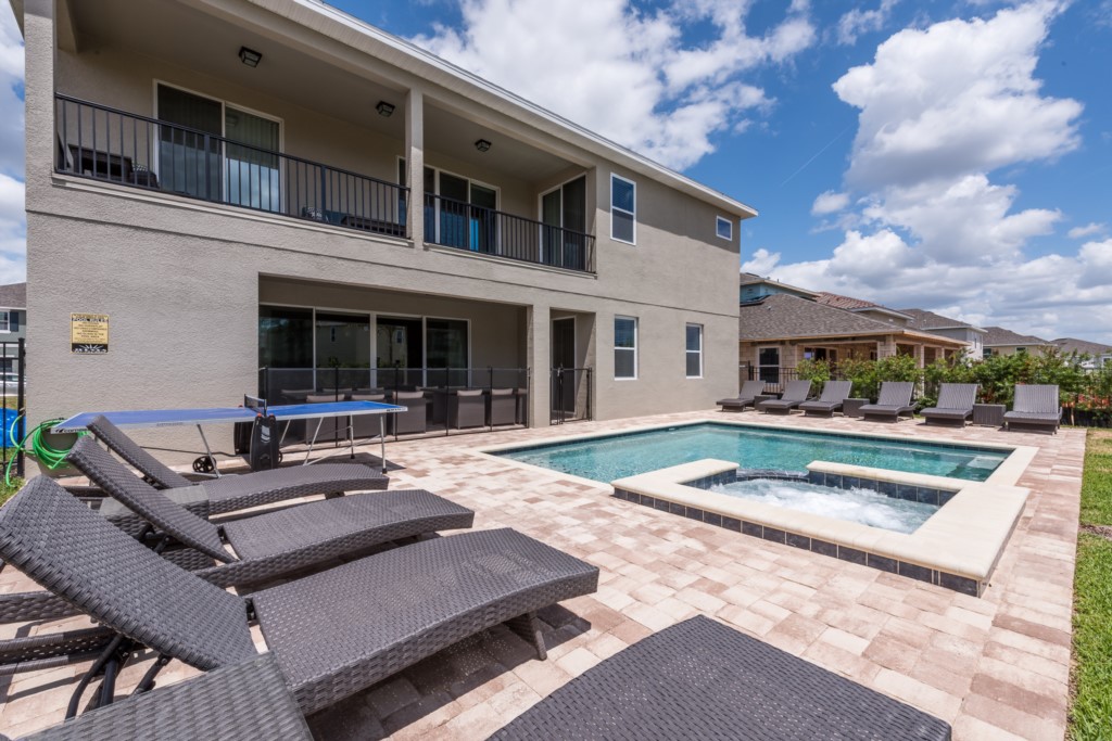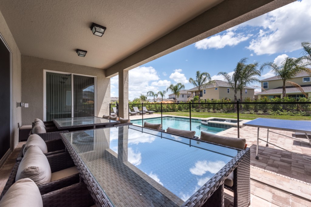 The private outdoor deck is the perfect way to enjoy Florida's warm weather with your own swimming pool and spa as well as an outdoor ping pong table, great for some friendly competition!