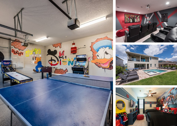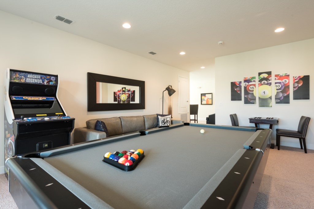 A home theater, themed games room, and entertainment loft area provides hours of endless entertainment where you and your loved ones can watch your favorite movies on a large projection screen or find out who is the best at pool, foosball, or video games!