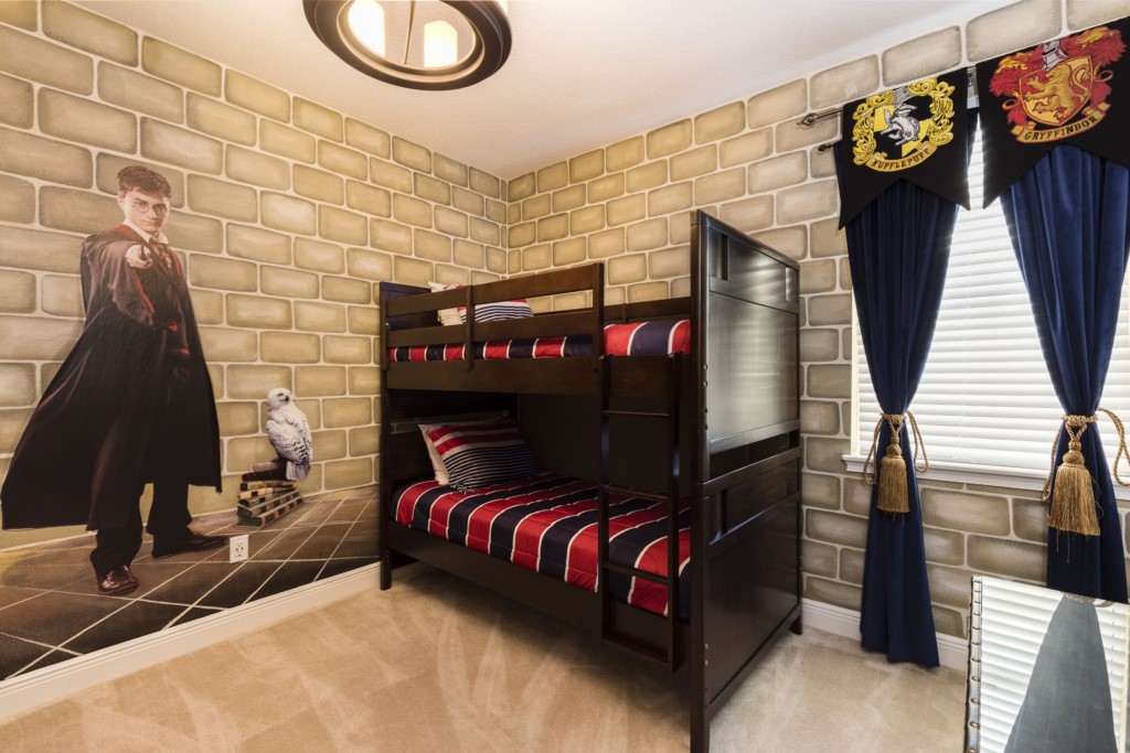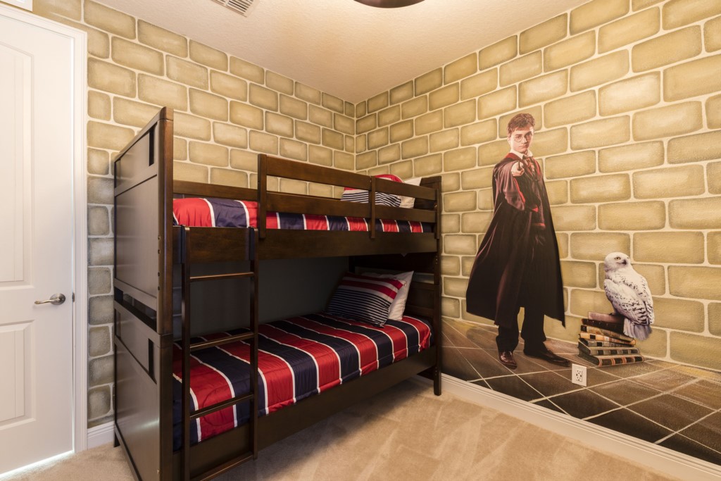 'Harry Potter' themed bedroom with 2x sets of bunk beds (4x Twin sized beds) and an en suite (shower)
