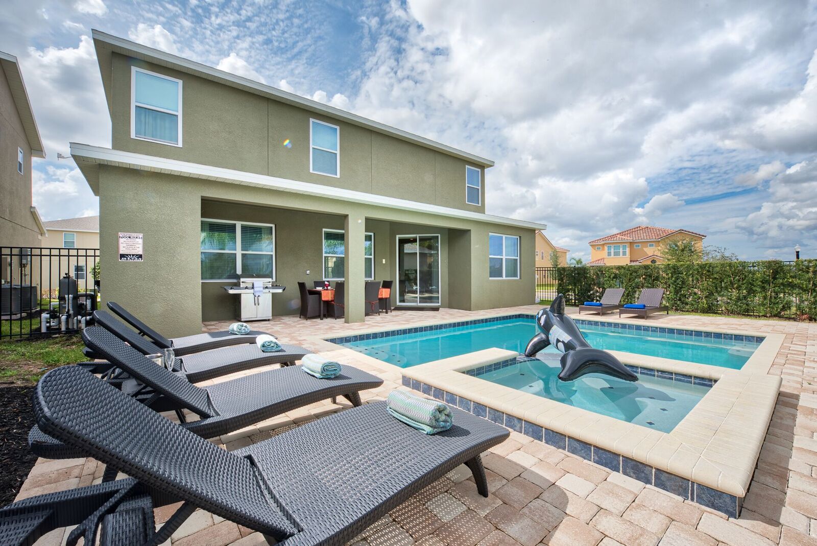 The outdoor patio is the best way to enjoy Florida's sunshine and warm weather with your own private swimming pool and spillover spa!