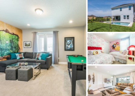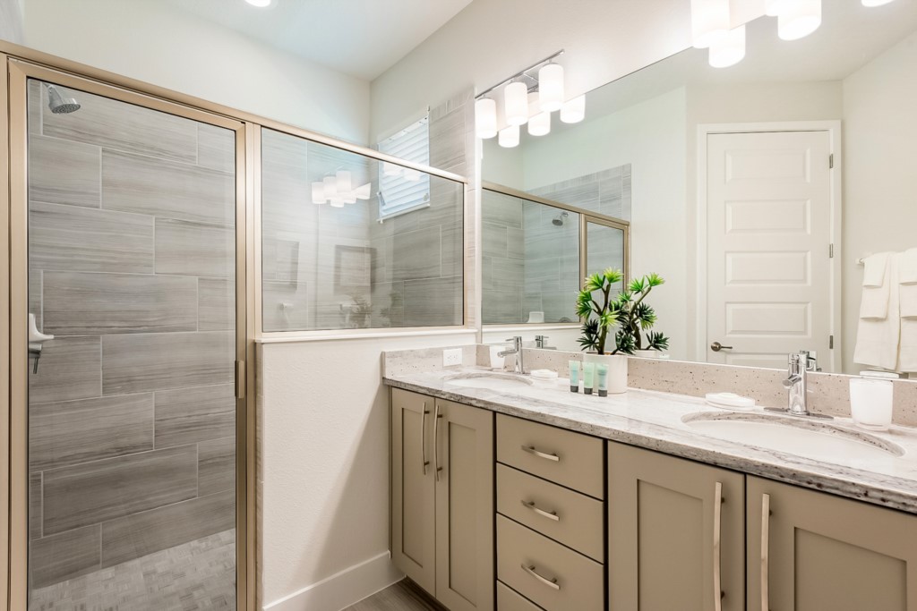 This 6 bedroom villa, located at the Encore Club, is the perfect choice for families wanting an unforgettable vacation in Orlando! With close proximity to Walt Disney World (about 10 minutes away), the possiblites are endless with exclusive on property amenities to add to the fun including a clubhouse with a bar and restaurant and a water park with twisting and drop slides!
