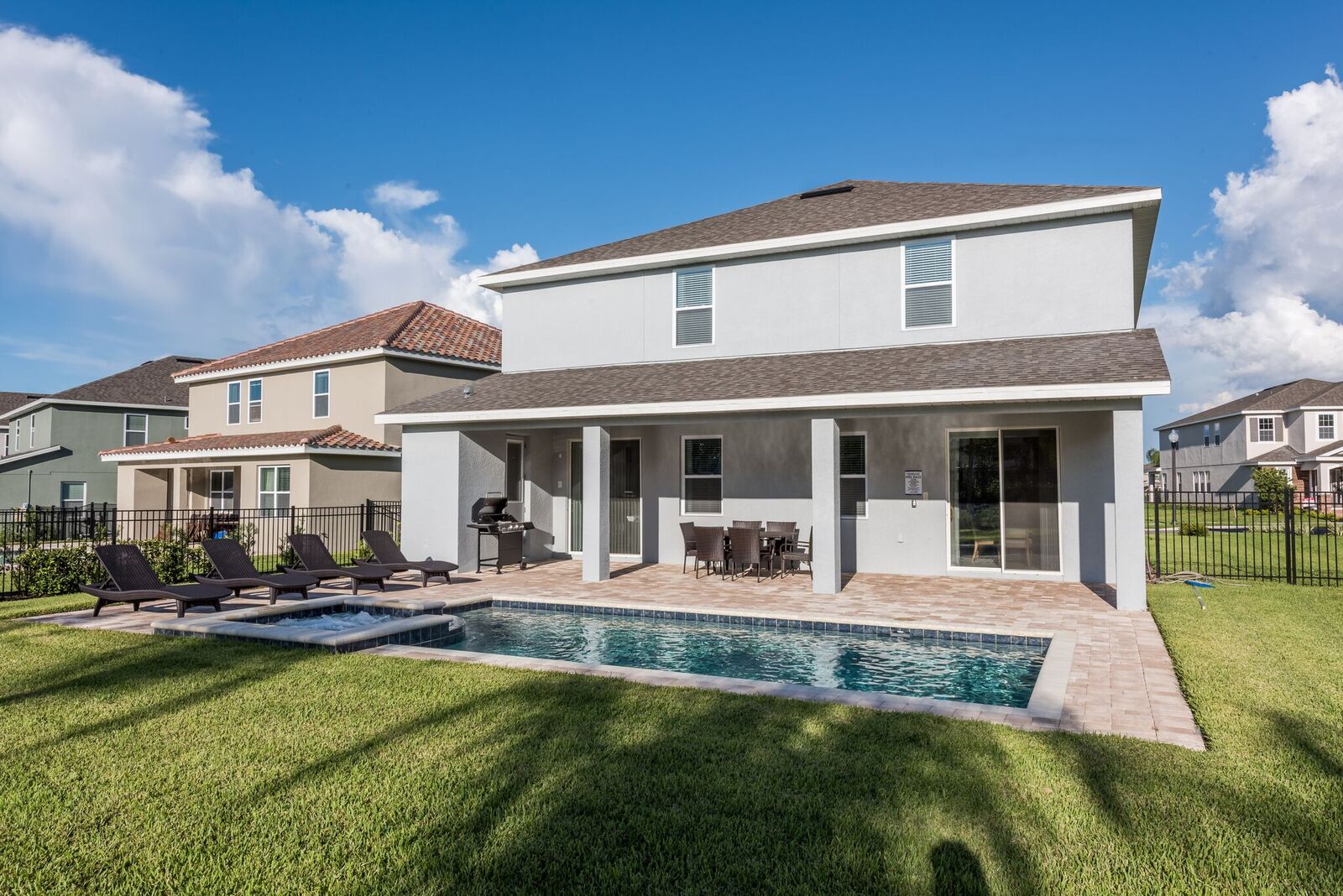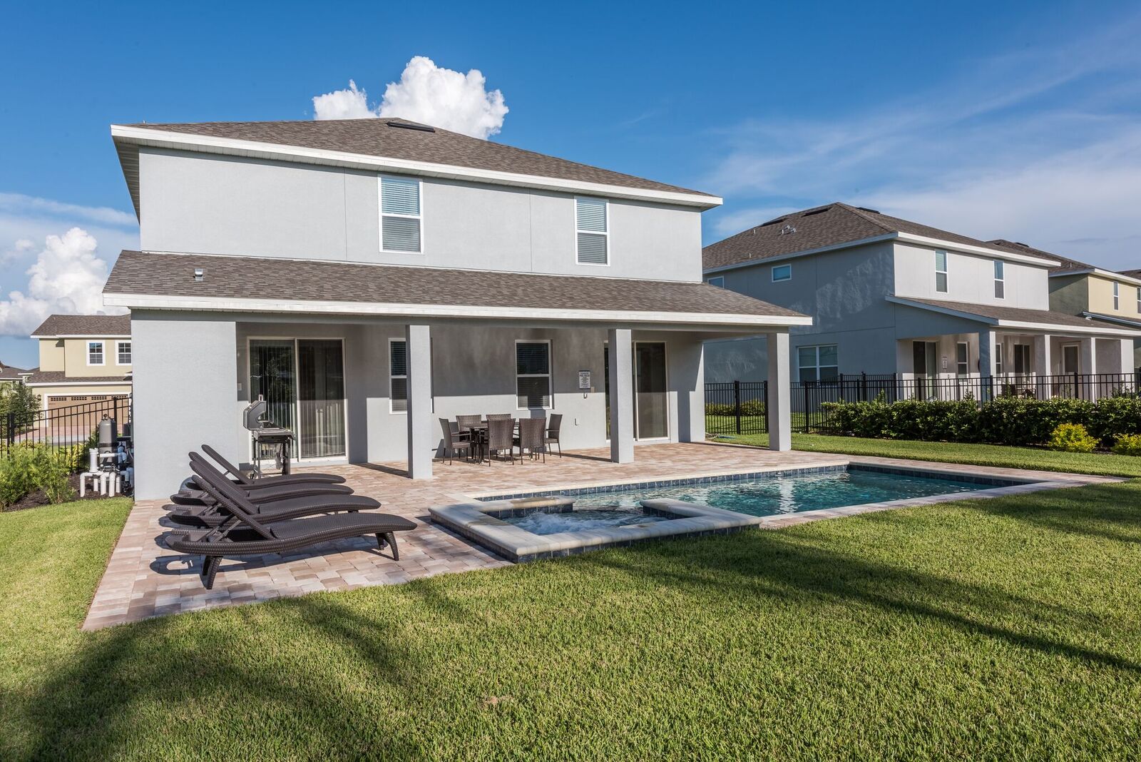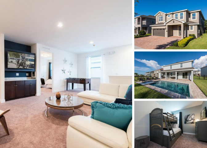 The upper floor loft area is the perfect place to play friendly competitions of foosball and the private swimming pool and spa allows everyone to enjoy Florida's sunshine and warm weather in the privacy of your very own vacation home.