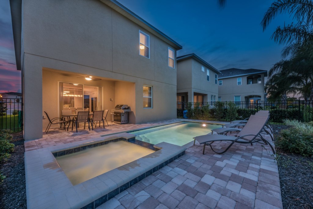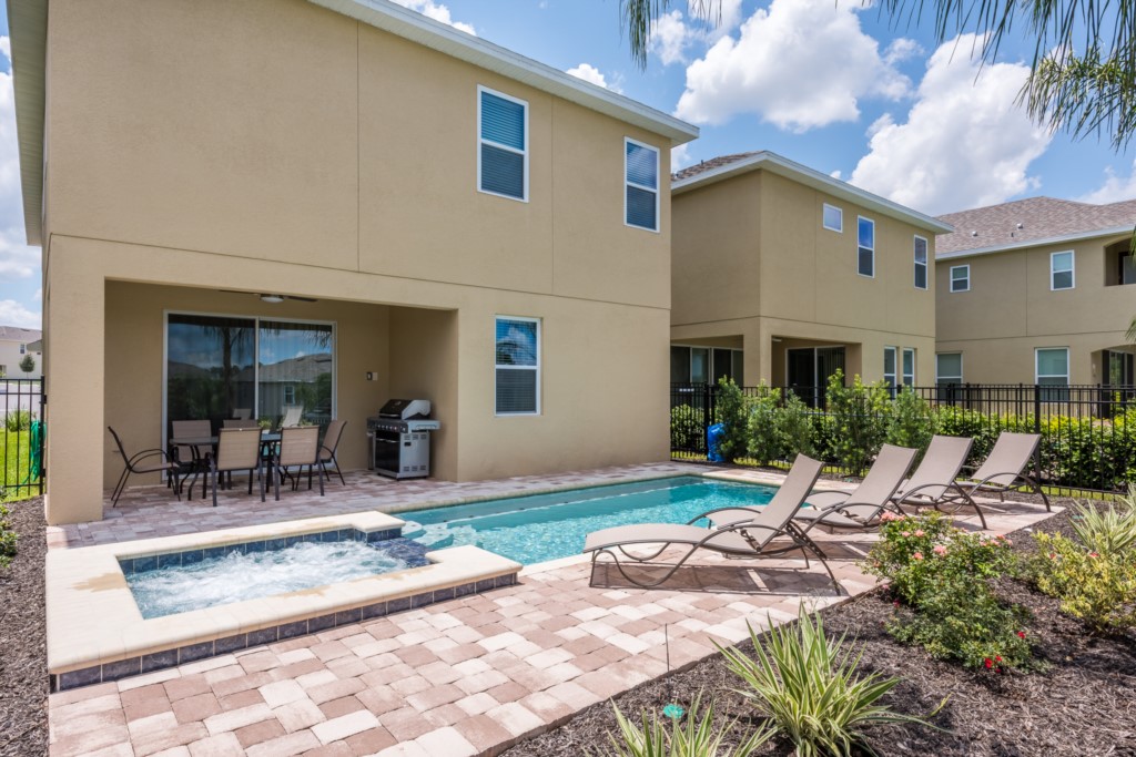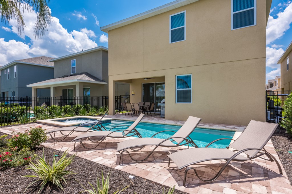 The upstairs loft area is equipped with a large flat screen TV and leather sectional where the whole family can gather together for some quality time and a private swimming pool and spillover spa is the perfect way to relax outdoors to soak up some Florida sunshine while on vacation!