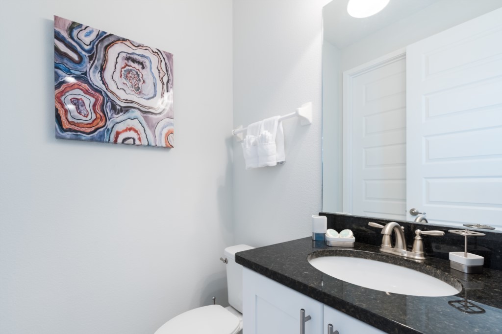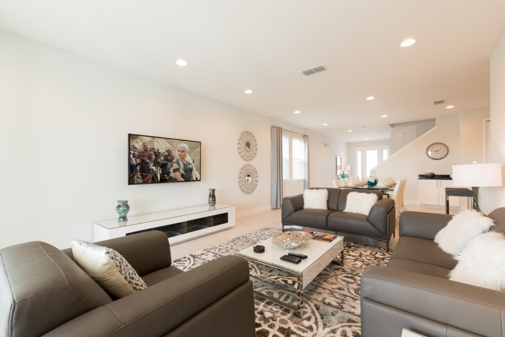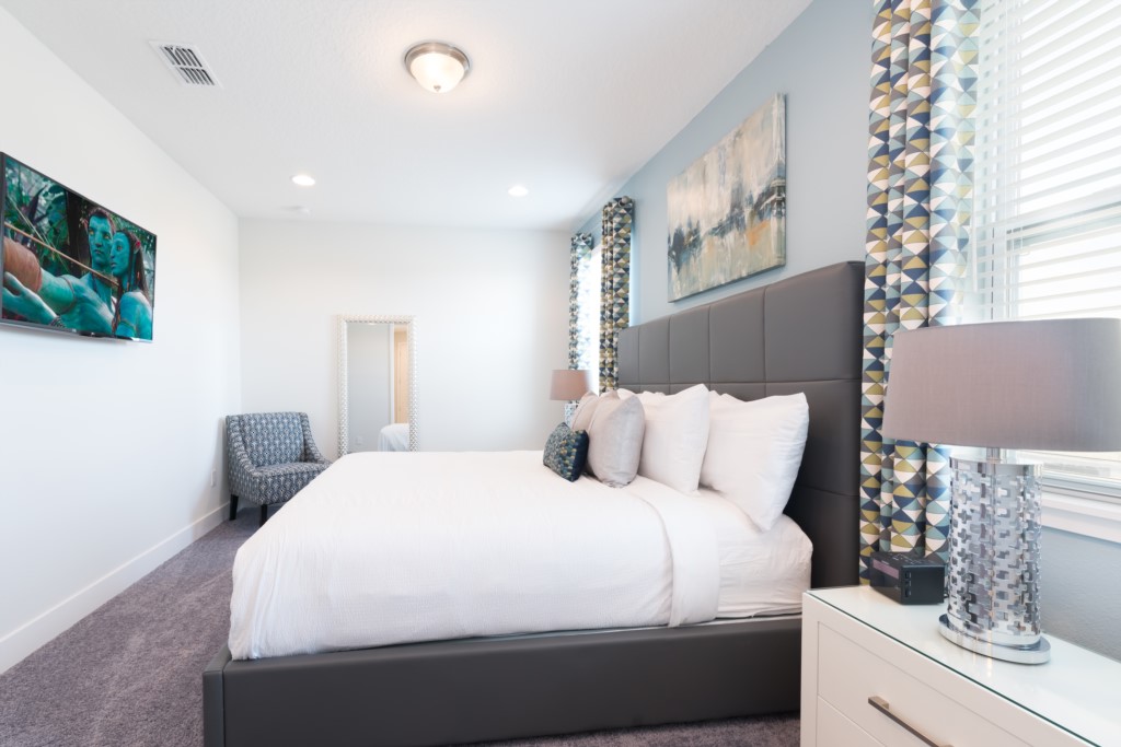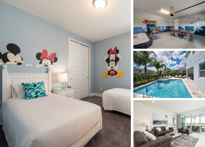 This modern 6 bedroom villa, located at the Encore Club, is just about a 10 minute drive to Walt Disney World and their 4 incredible theme parks! You and your family can create magical memories together only down the road from your vacation home! The Encore Club also offers exclusive on property amenities such as their fabulous clubhouse with a delcious restaurant/bar and an Aqua Park with twisting and drop slides!