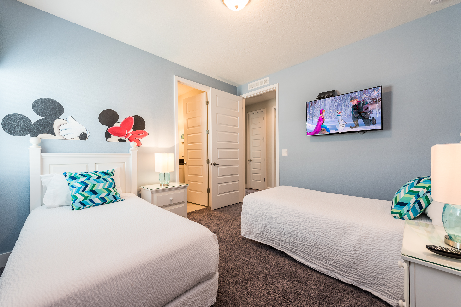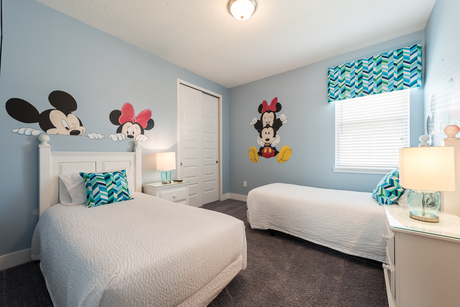 Themed bedroom with 2x Twin sized beds and an en suite (shower)