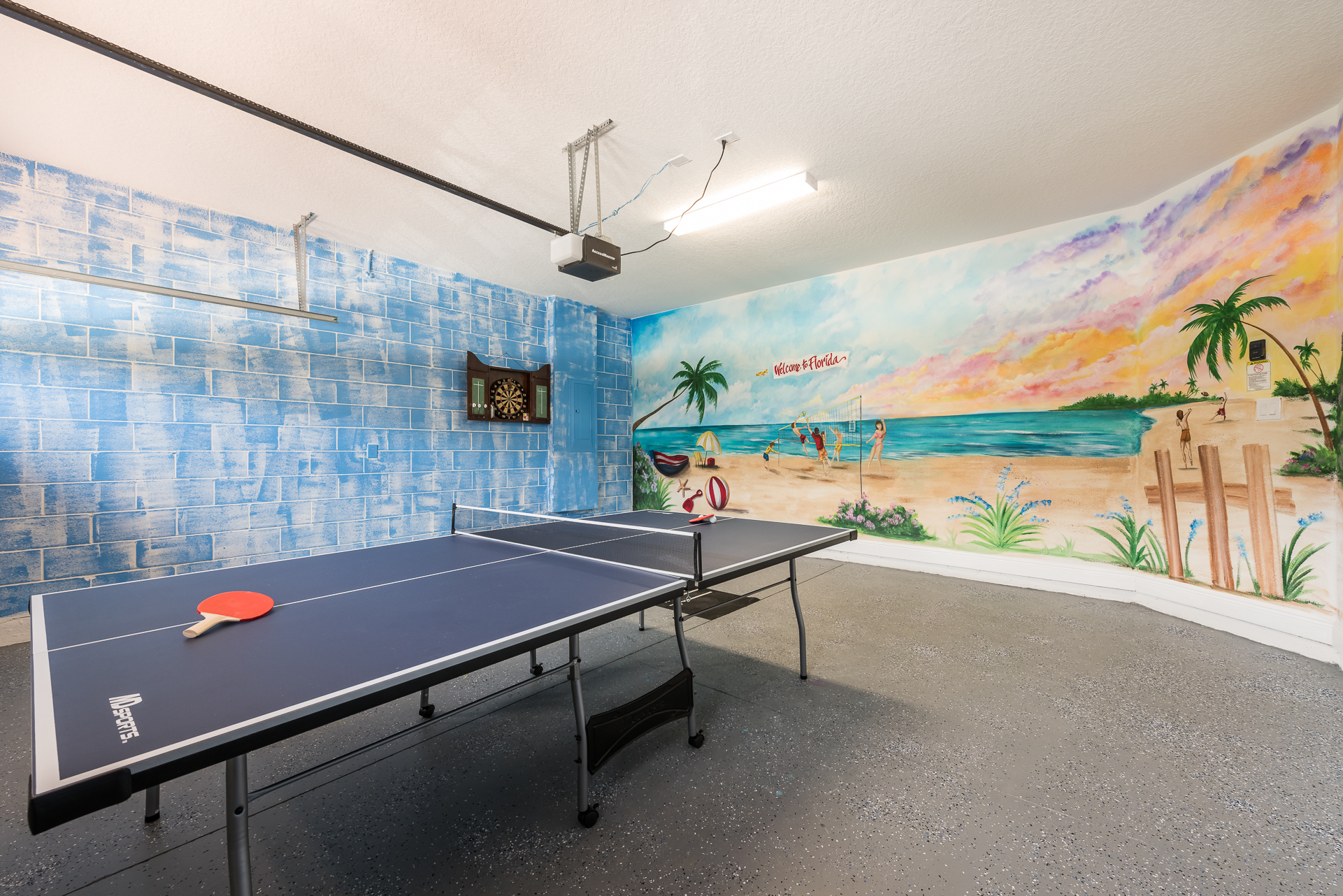 The entertainment does not end at the parks! Your vacation home is equipped with a ping pong table and a dart board as well as the luxury of your very own private swimming pool and spillover spa right outside your patio doors!
