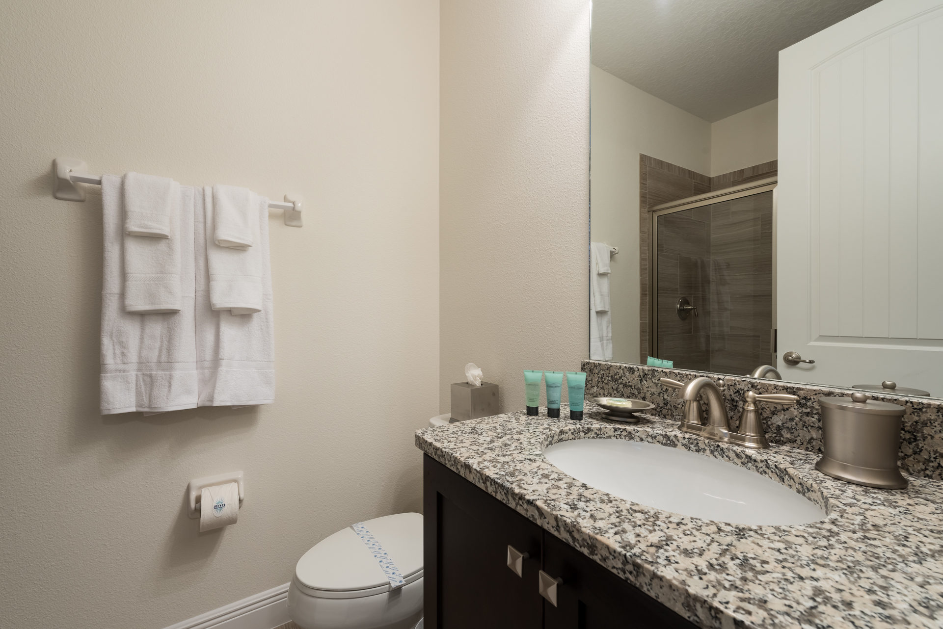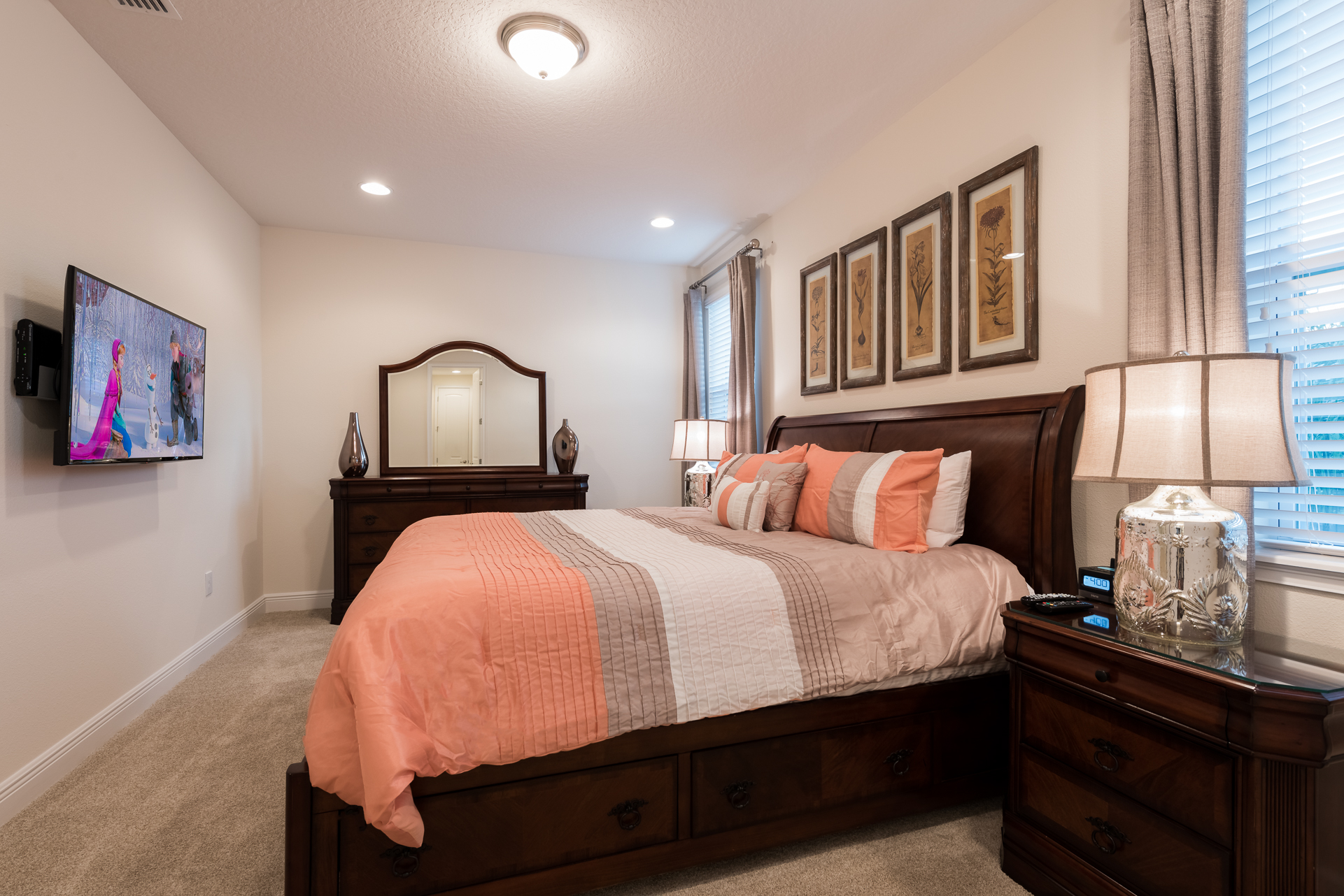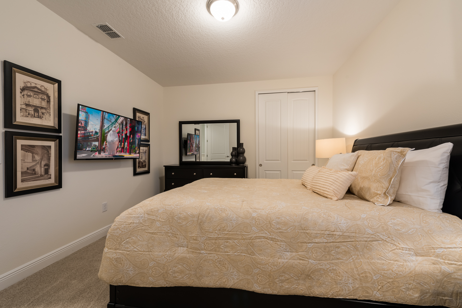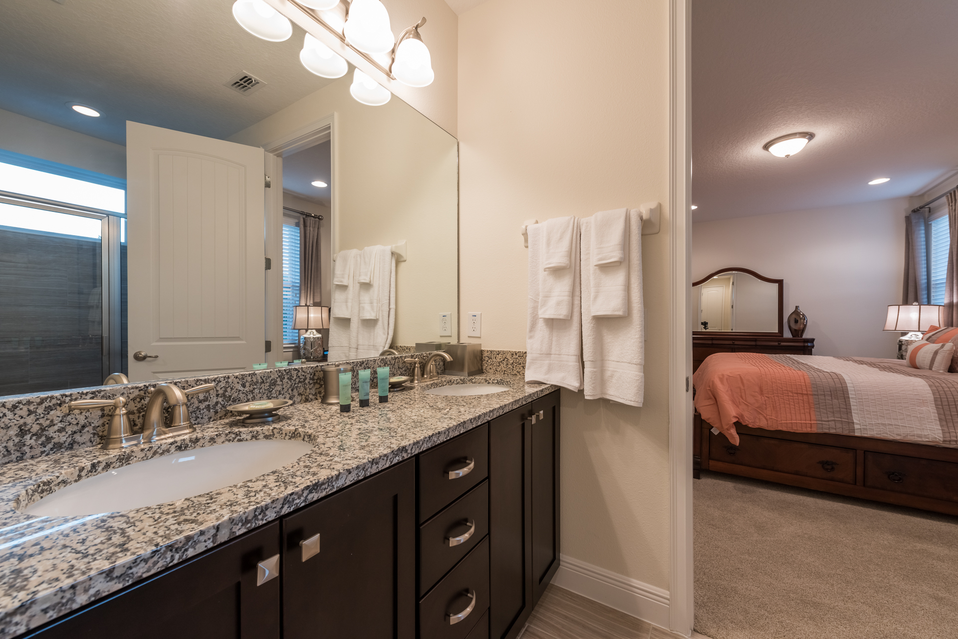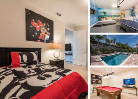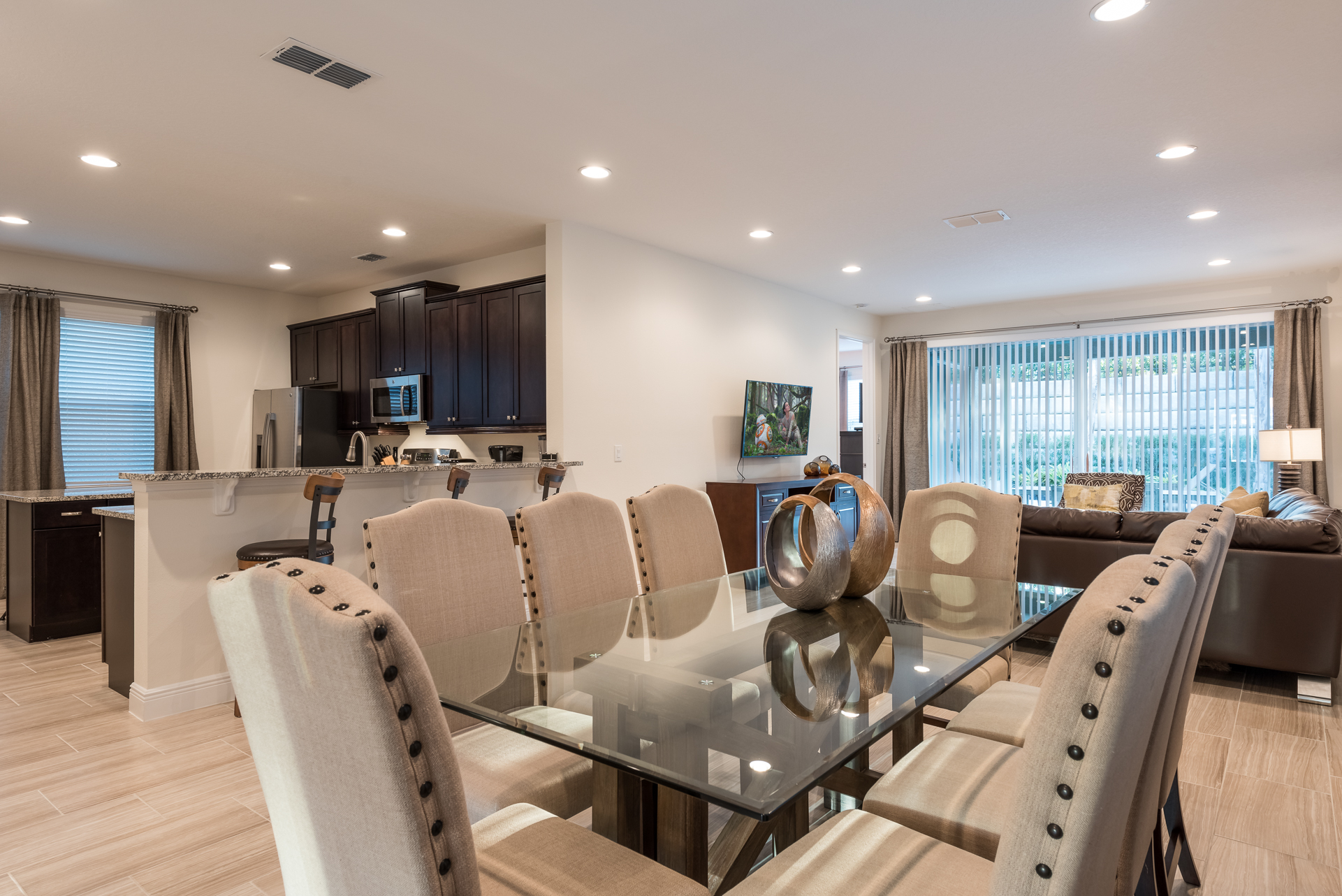 This 6 bedroom rental home is located at the Encore Club, less than 10 minutes to the Happiest Place on Earth, Walt Disney World! Their 4 incredible theme parks are there waiting for you and your loved ones to experience and enjoy! The Encore Club also provides exclusive amenities on property including a water park with thrilling drop and twisting slides, multiple restaurants and bars, and an amenity center with a kid's and fitness room!