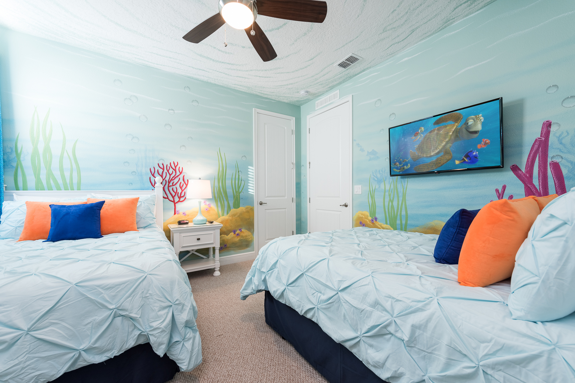 'Finding Nemo' themed bedroom with 2x Full sized beds and an en suite (shower), located through the loft area