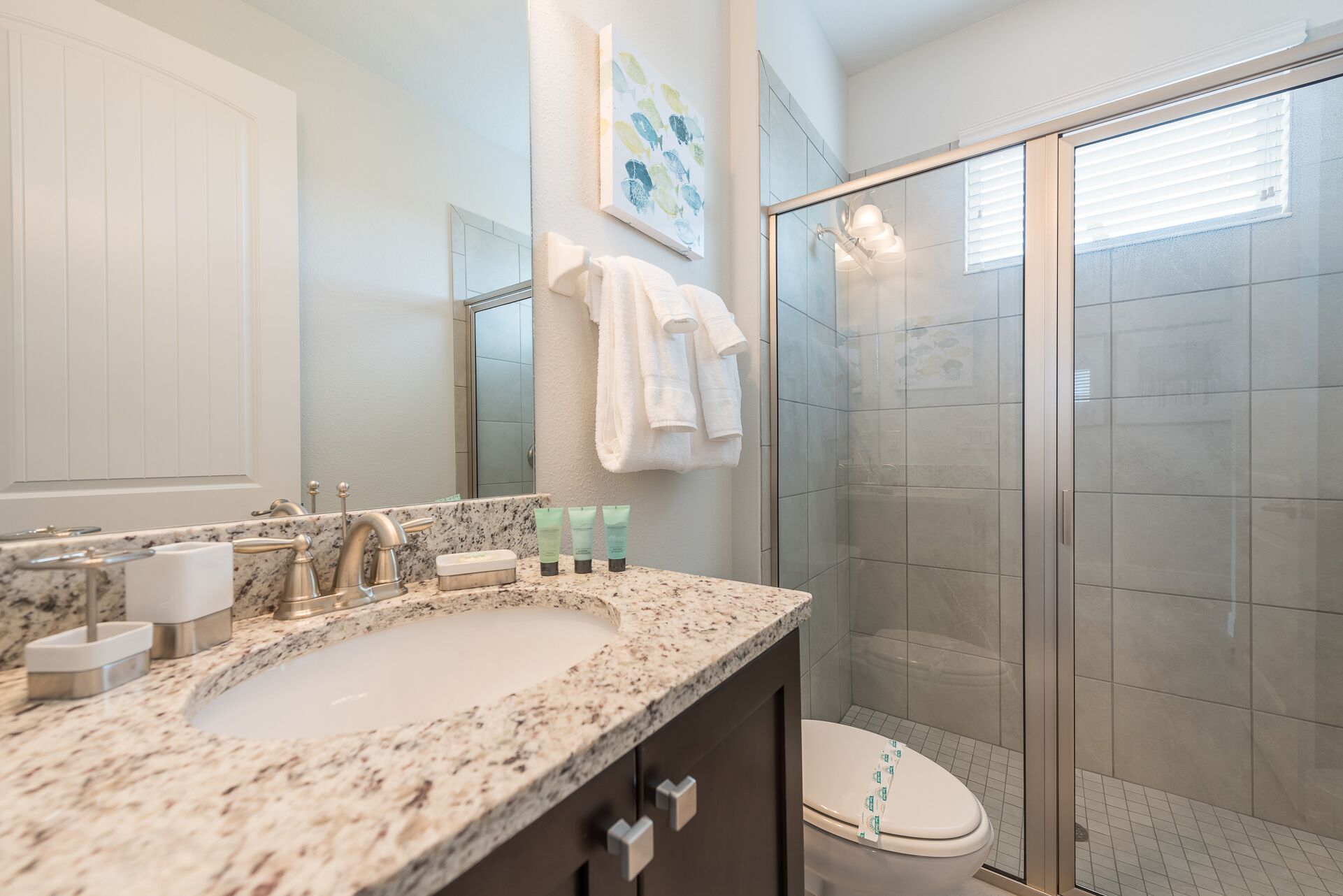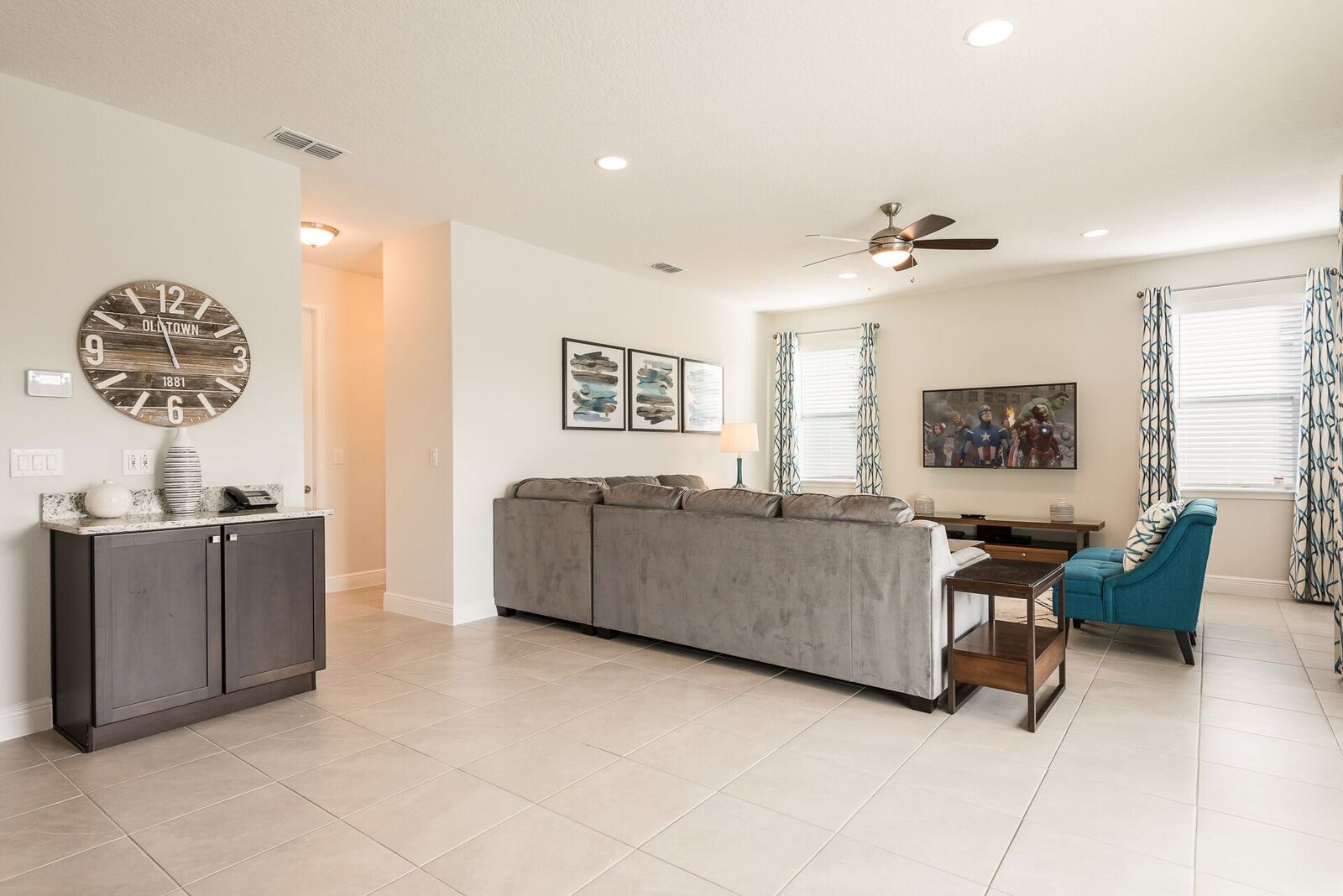 This 5 bedroom villa is located at the Encore Club, less than a 10 minute drive down the road to Walt Disney World and their 4 incredible theme parks! Conviently located for you and your loved ones to experience and enjoy, Walt Disney World's proximity from this vacation home is an added bonus while staying on the Encore Club property! The Encore Club also offers exclusive amenities right on property including a waterpark with thrilling drop and twisting slides, multiple restaurants and bars, and an amenity center with a fitness room and kid's area!