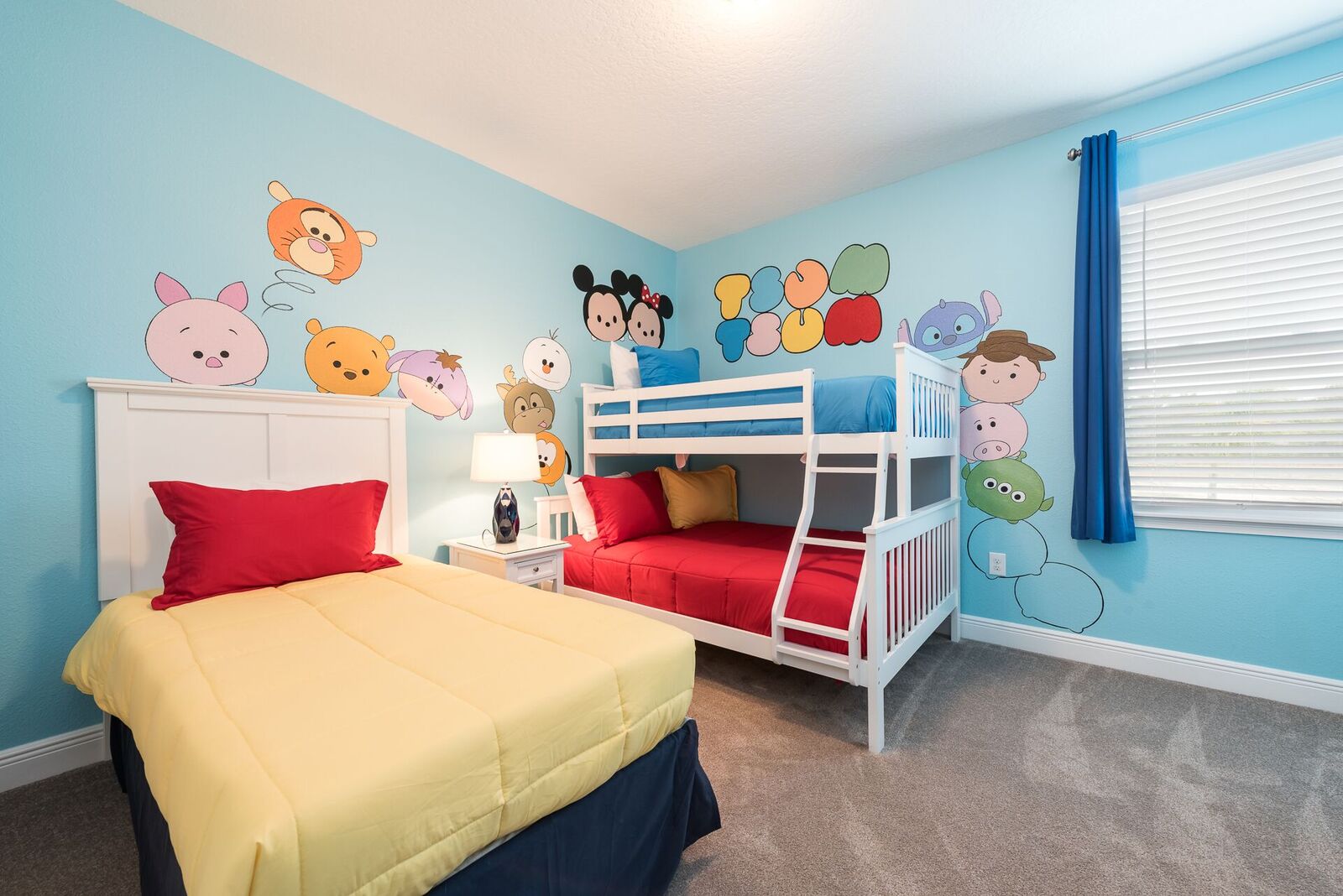 'Disney Tsum Tsum' themed bedroom with bunk beds (Twin and Full sized bed) as well as an additional Twin sized bed