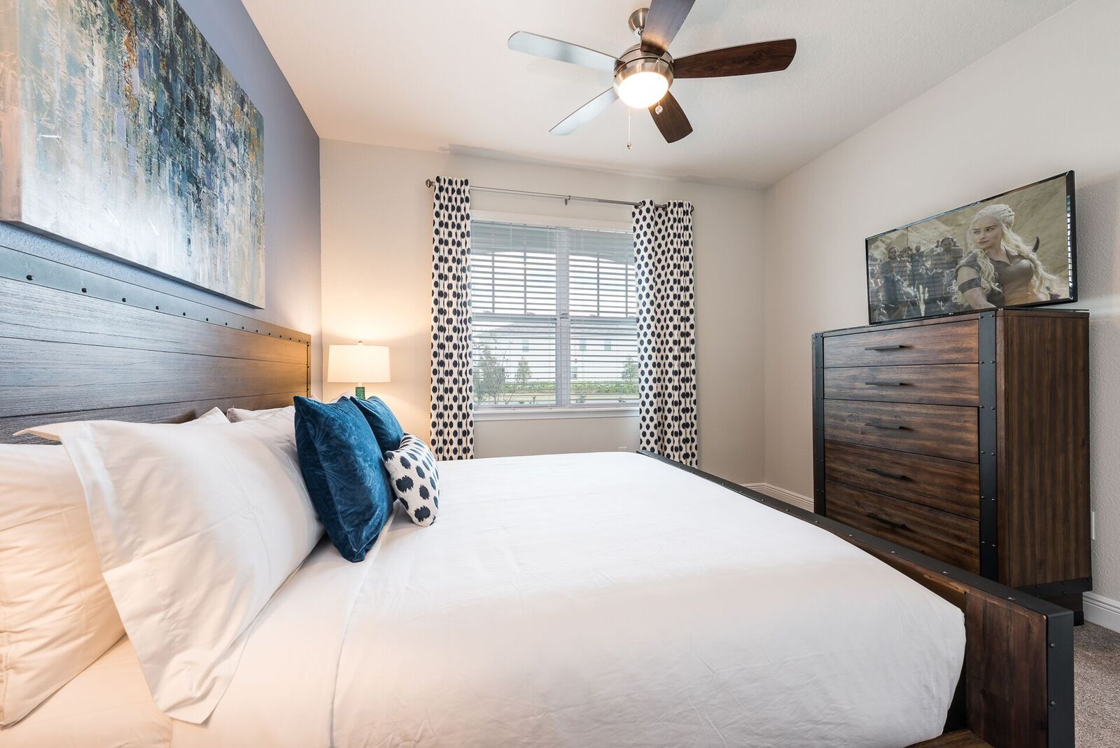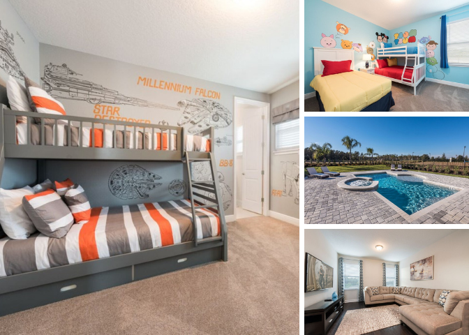 Sleeping up to 11 people, EC213 has bedrooms across both floors including 2 children's themed bedrooms such as 'Disney Tsum Tsum' and 'Star Wars'! The upper floor loft area is equipped with a large flat screen TV and sectional so you and your family can unwind and relax after long days at the theme parks!