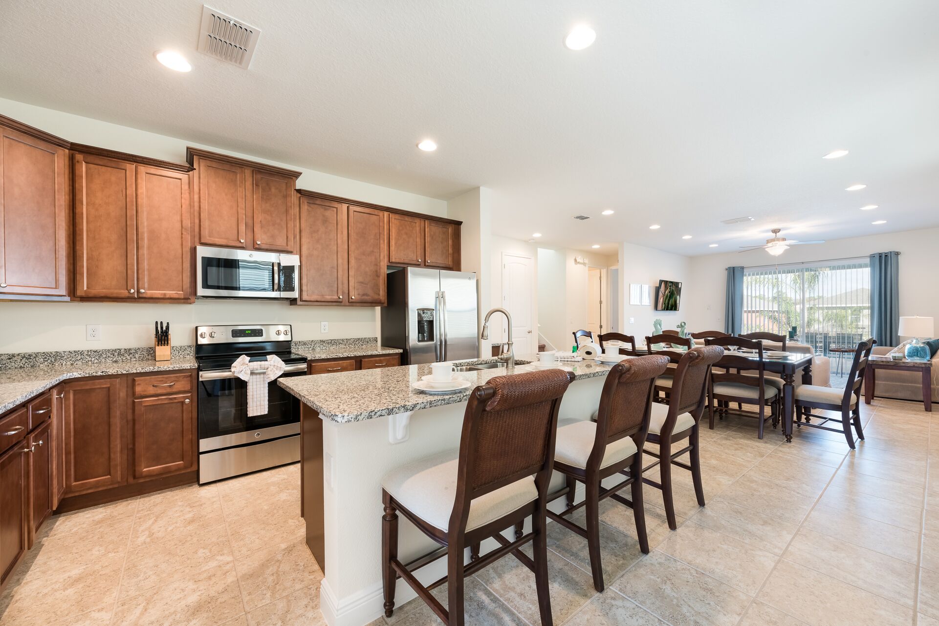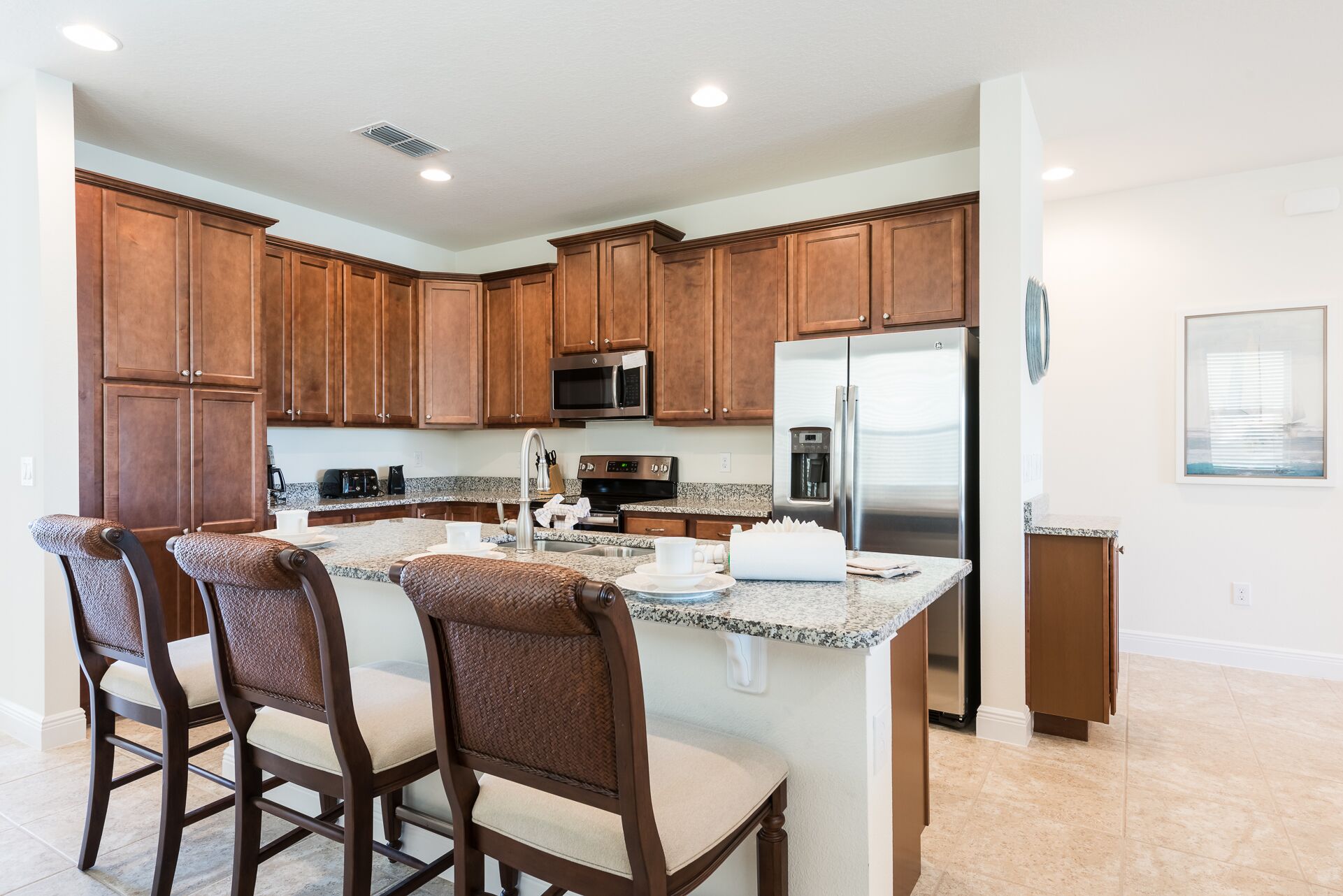 Fully equipped with a granite 3 seat island style breakfast bar