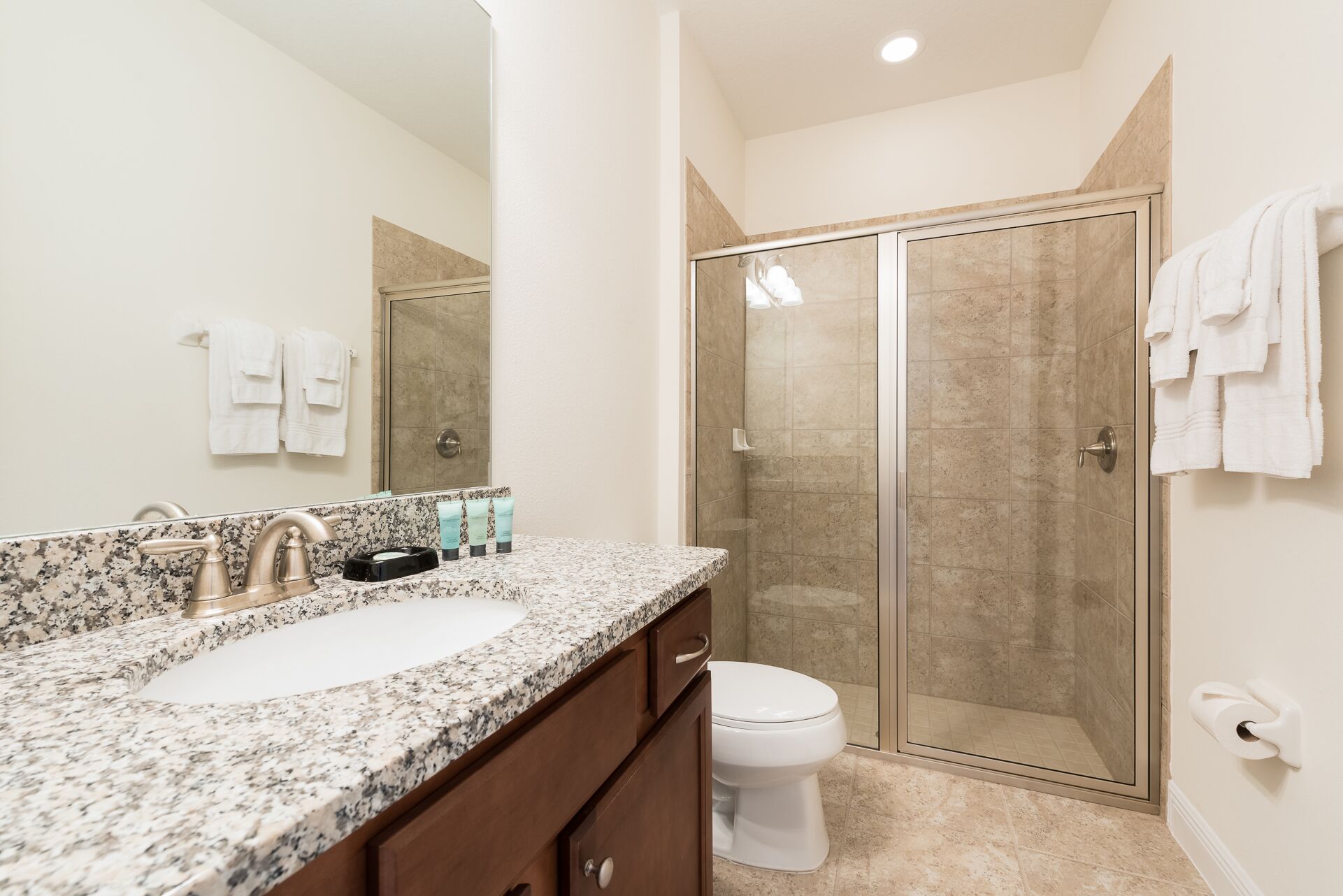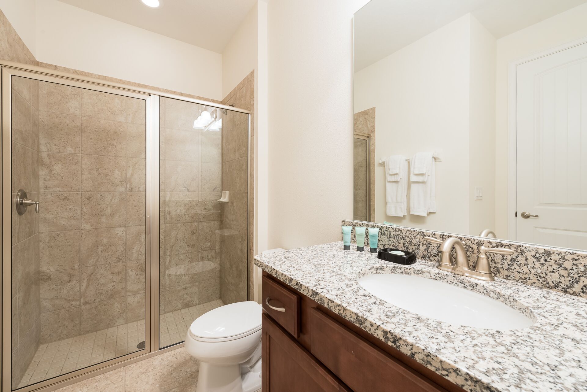 2x bedrooms each with 2x Twin sized beds in each and en suites (shower)