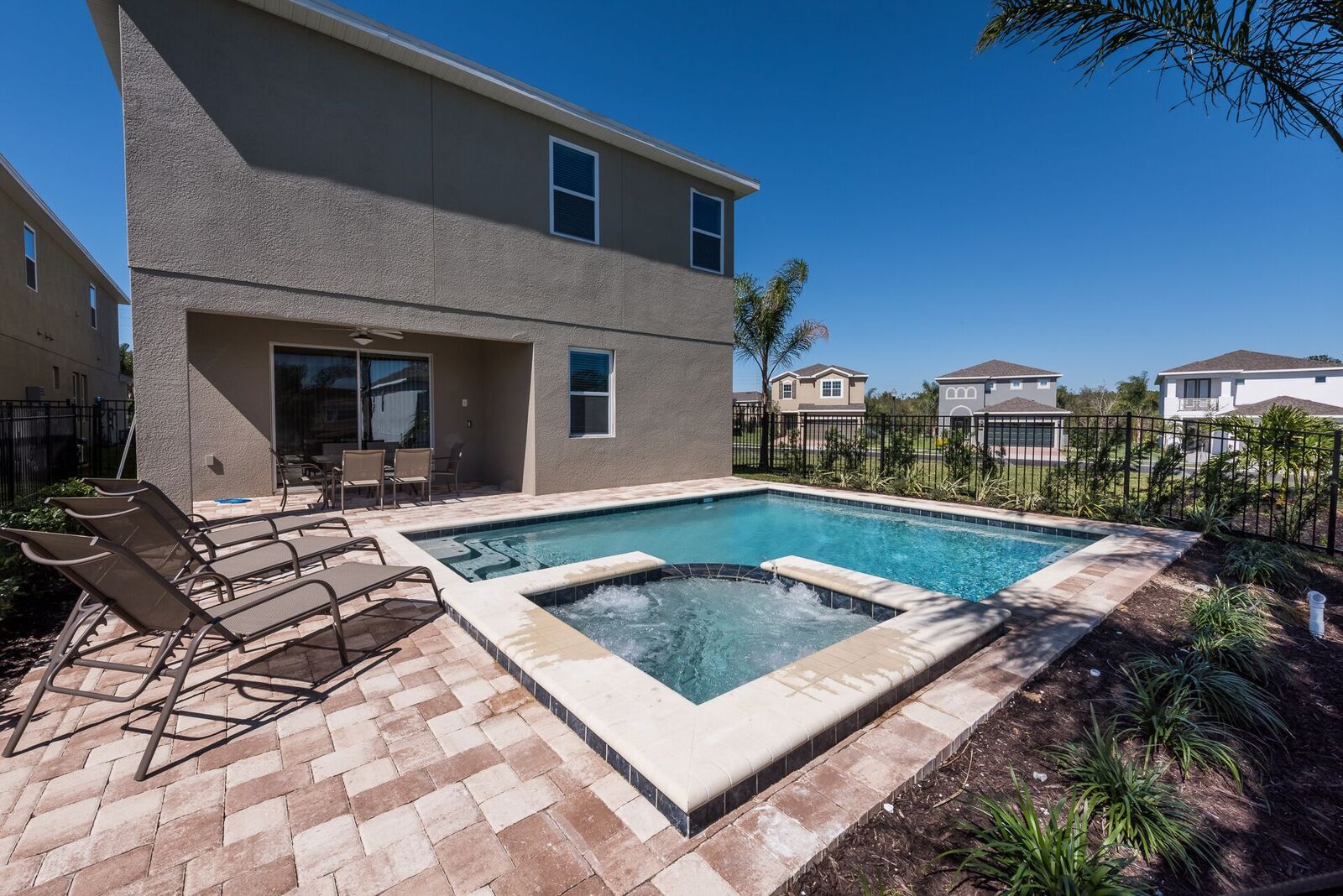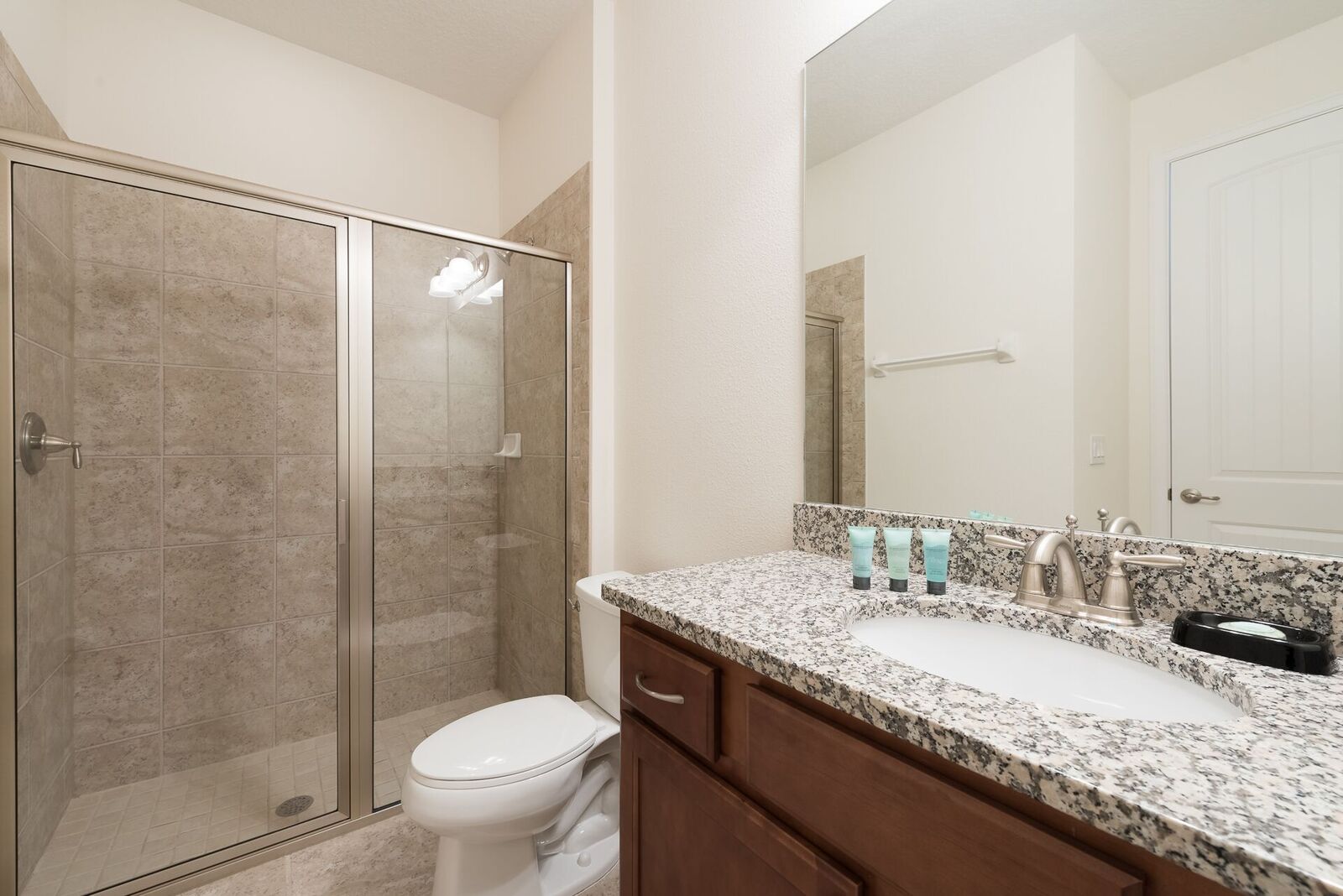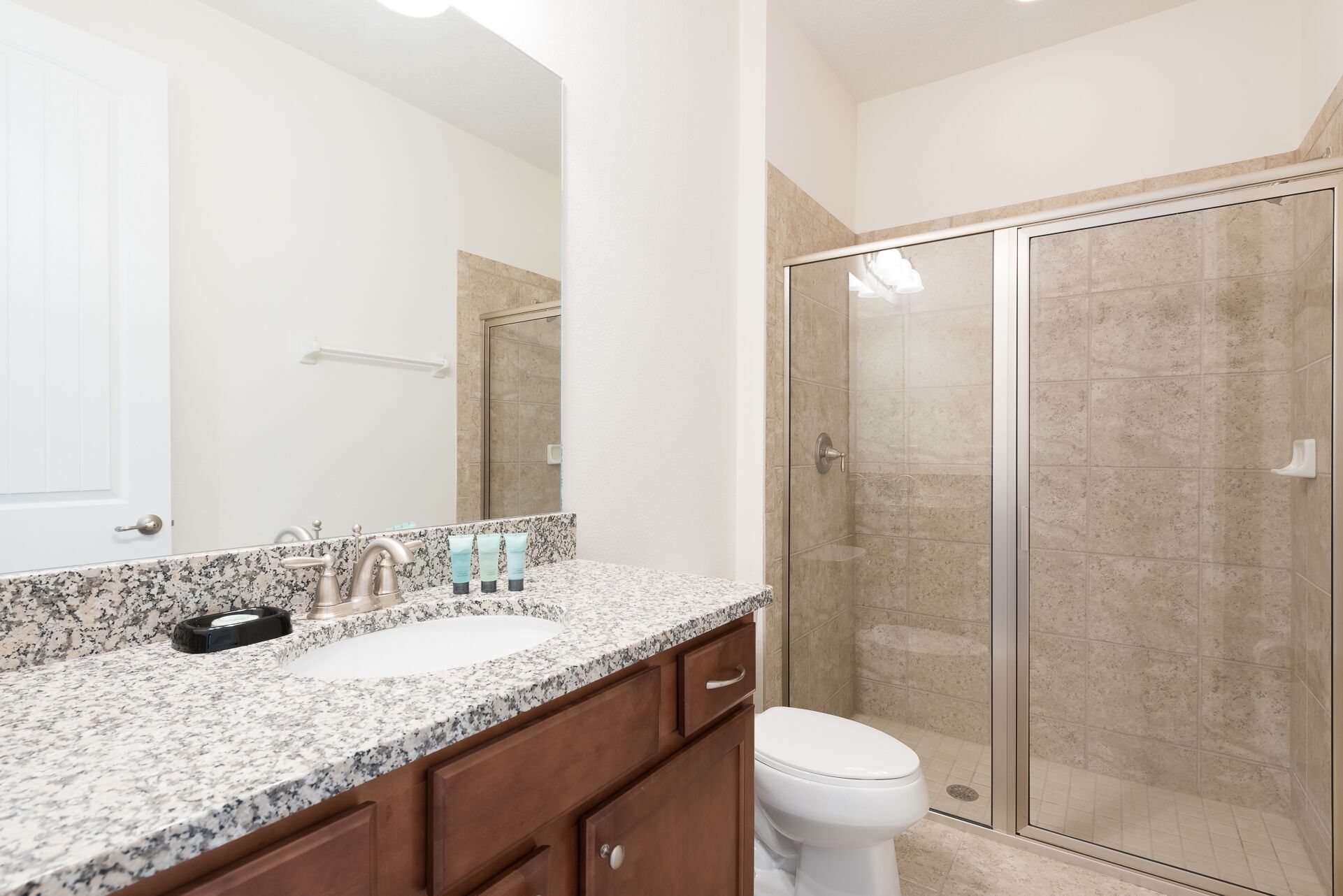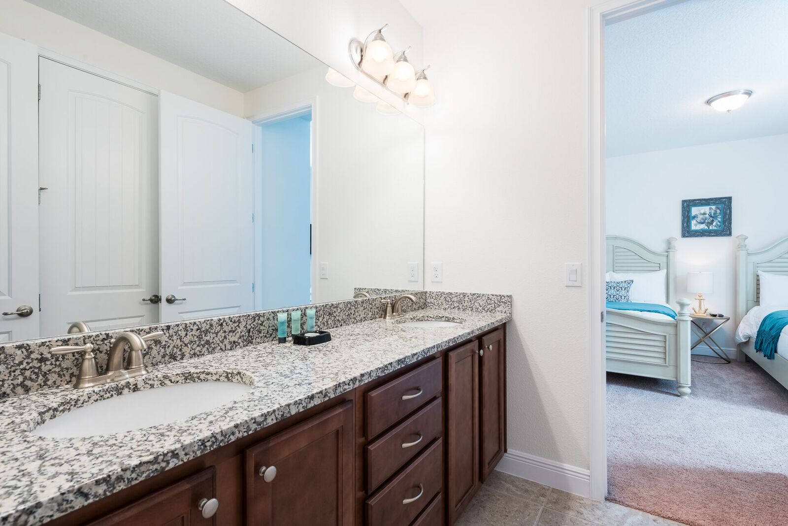 This 8 bedroom rental home, located at the Encore Club, is less than a 10 minute drive down the road to Walt Disney World! Offering 4 incredible theme parks for you and your loved ones to experience and enjoy, Disney World's proximity is only one of the many perks of staying on Encore Club property. We can't forget that the Encore Club also offers exclusive amenities right on property including a waterpark with thrilling drop and twisting slides, multiple restaurants and bars, and an amenity center with a fitness room and kid's area!