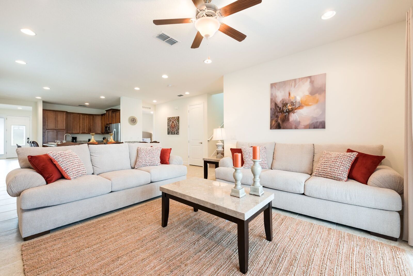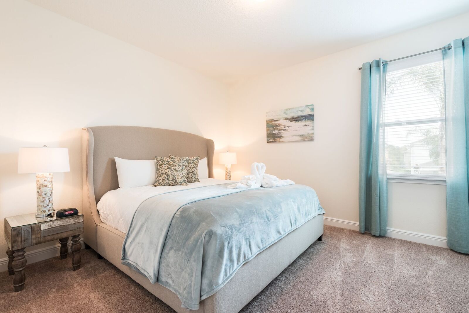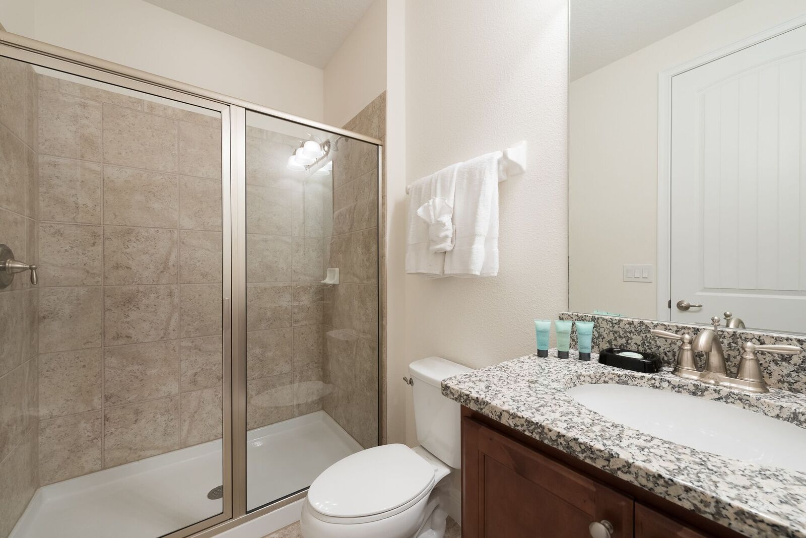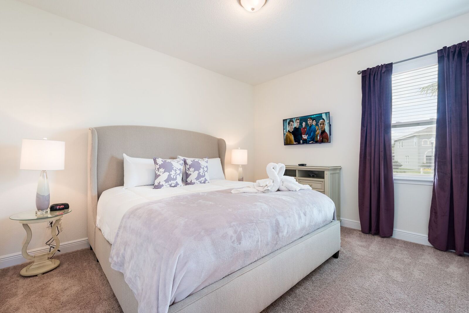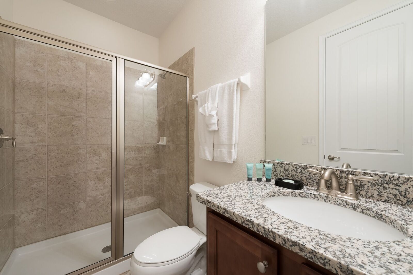 This 8 bedroom rental home, located at the Encore Club, is less than a 10 minute drive down the road to Walt Disney World! Offering 4 incredible theme parks for you and your loved ones to experience and enjoy, Disney World's proximity is only one of the many perks of staying on Encore Club property. We can't forget that the Encore Club also offers exclusive amenities right on property including a waterpark with thrilling drop and twisting slides, multiple restaurants and bars, and an amenity center with a fitness room and kid's area!