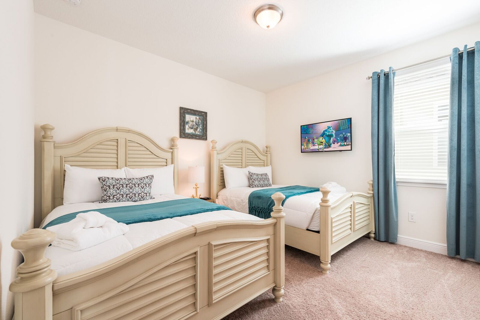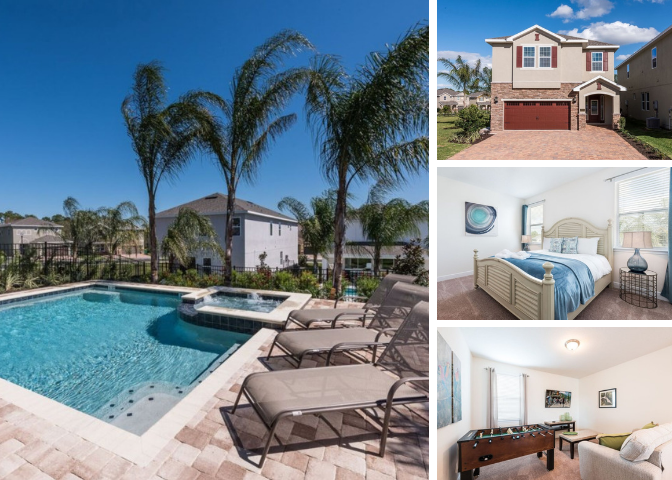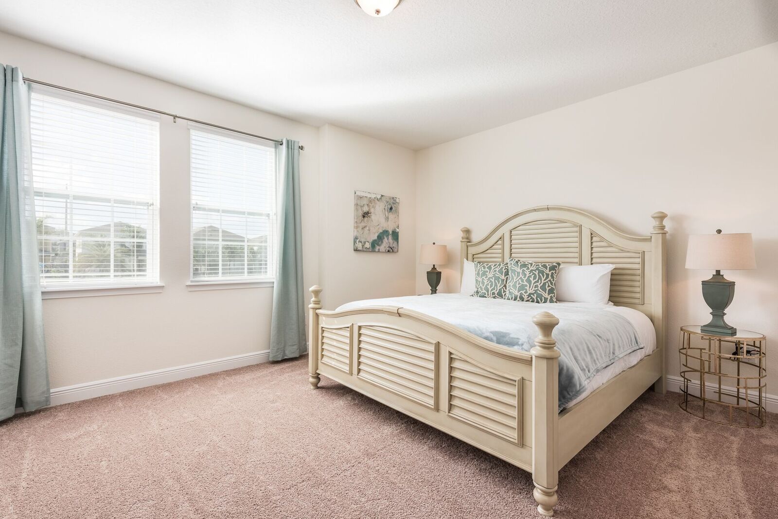 Sleeping up to 16 people, EC219 has bedrooms across both floors including 4 king sized bedrooms. Your vacation home also has the added bonus of your very own private swimming pool and spa right outside your patio doors! The upper floor loft area also provides a foosball table!