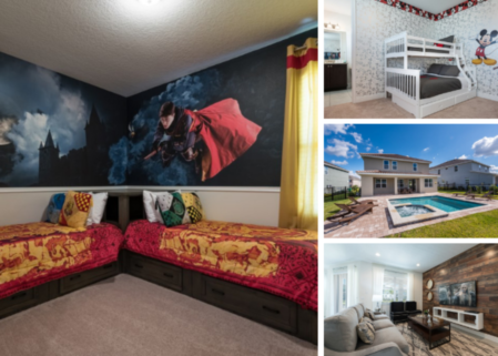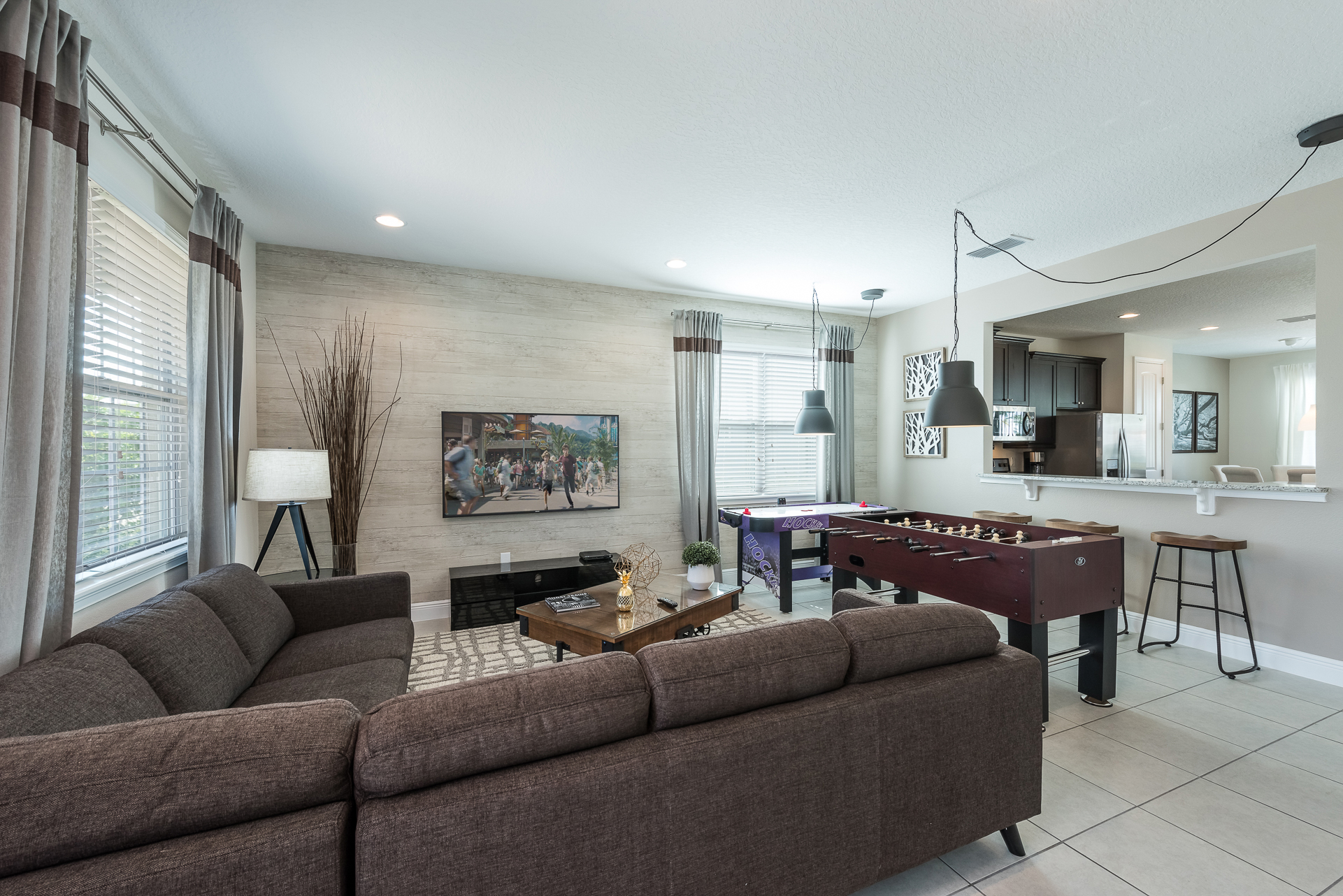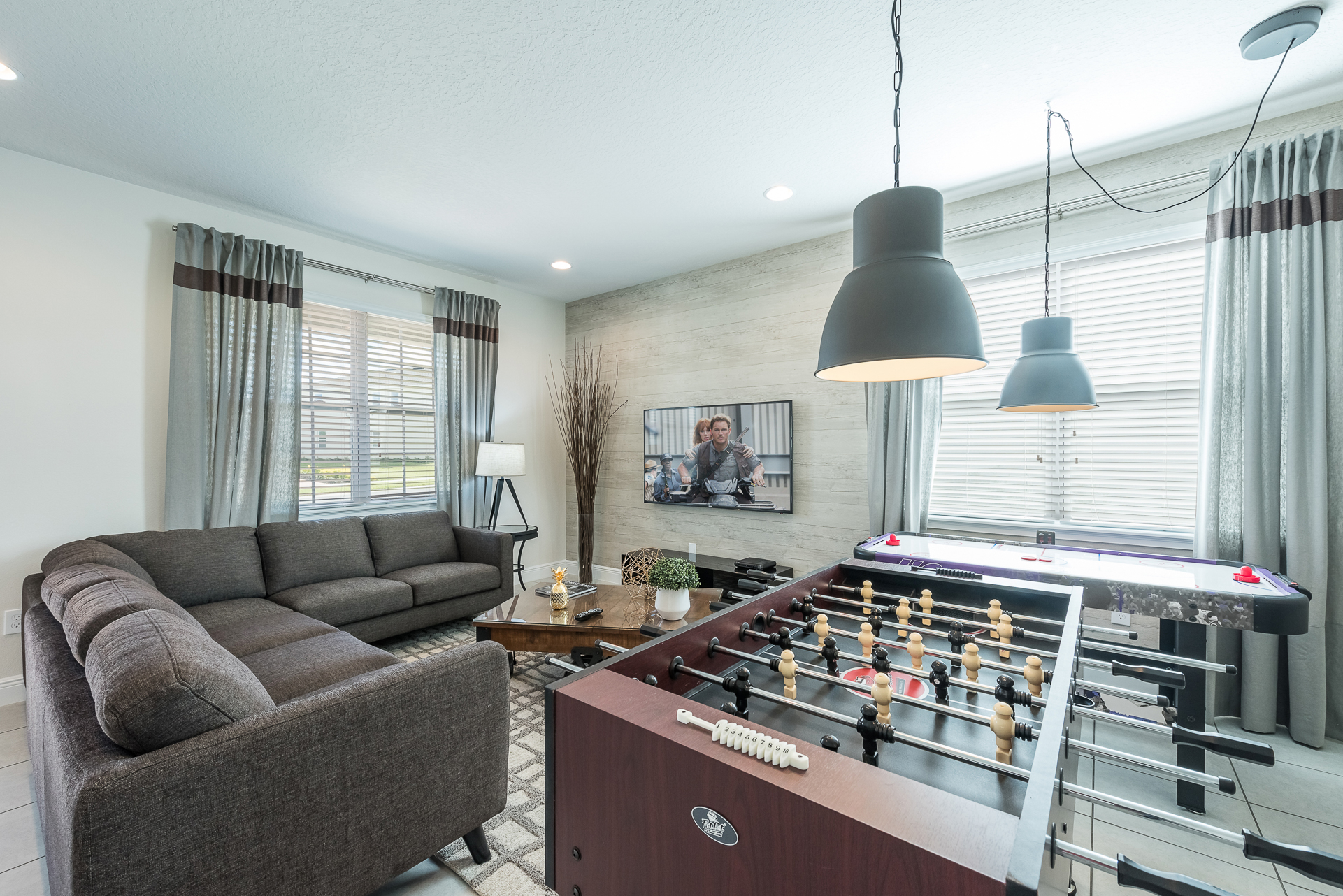 Sleeping up to 12 people, EC222 has bedrooms across both floors including 2 themed children's bedrooms, 'Mickey Mouse' and 'Harry Potter' and is furnished with a contemporary vibe! Your vacation home also has the added bonus of your very own private swimming pool and spa right outside your patio doors! The entertainment doesn't stop there with a foosball and air hockey table right inside your vacation home!