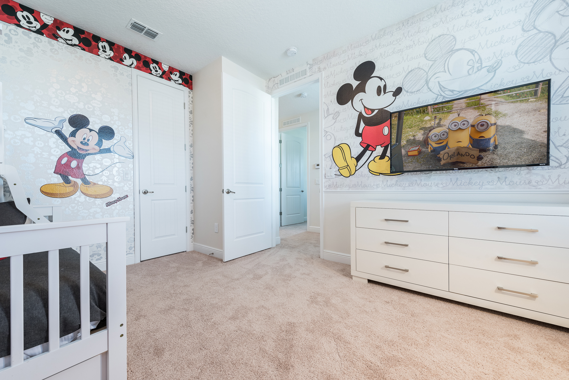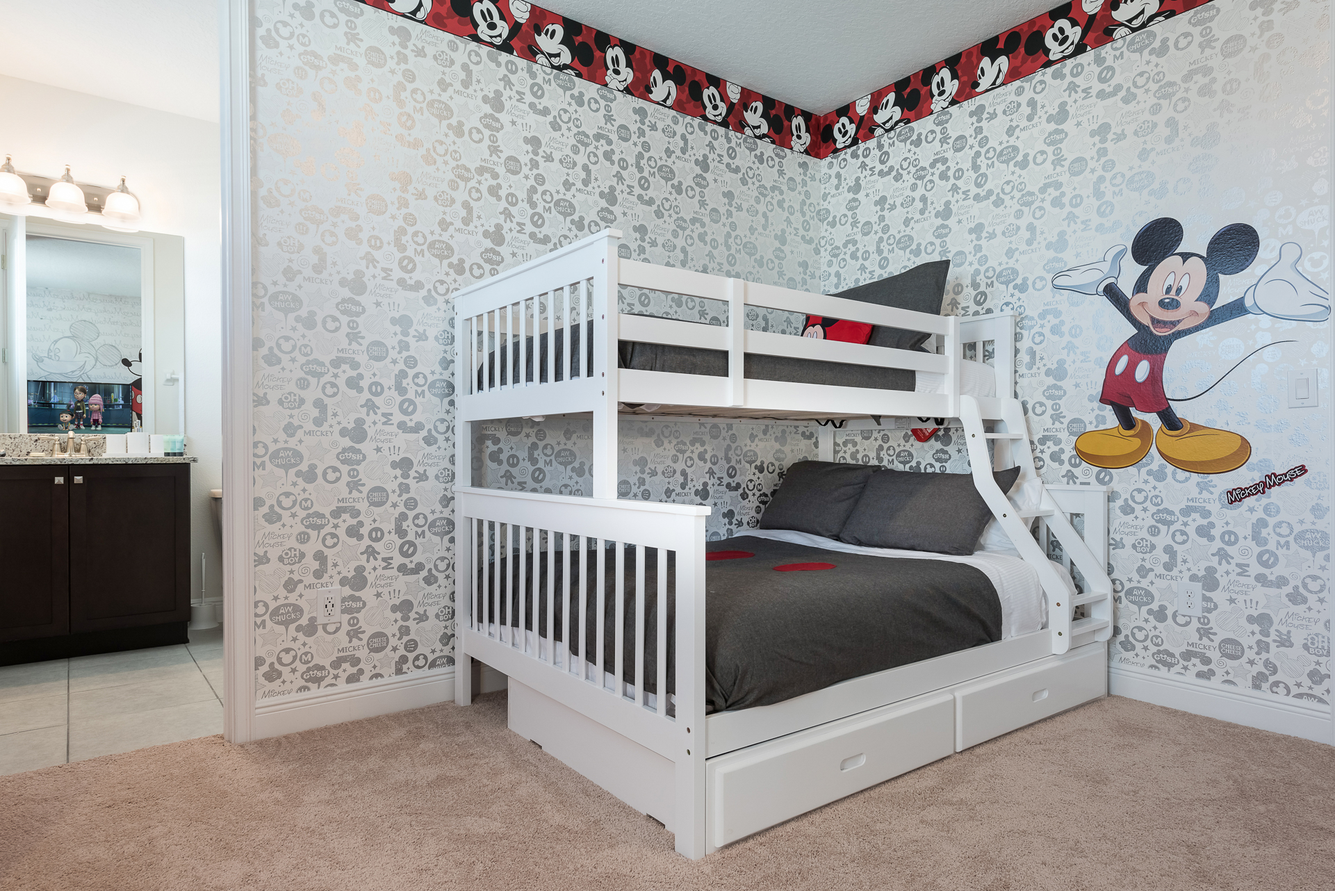 'Mickey Mouse' themed bedroom with bunk beds (Twin and Full sized bed) and an en suite (shower)