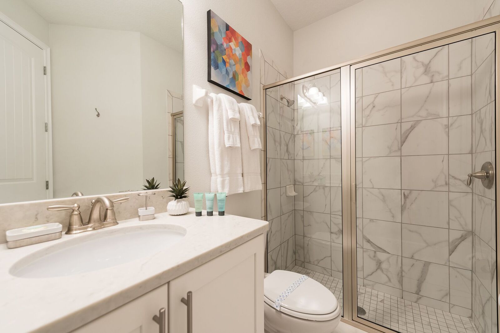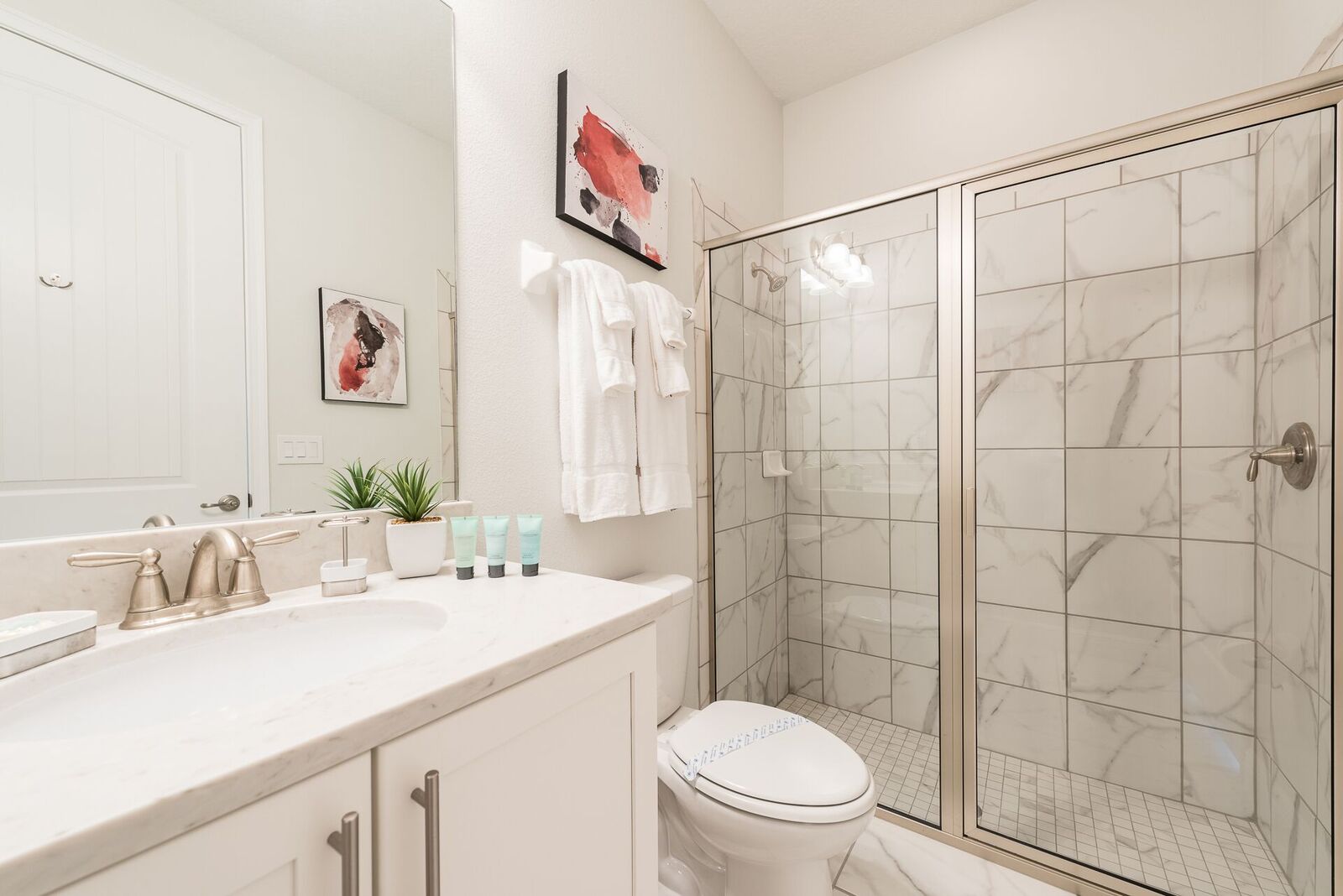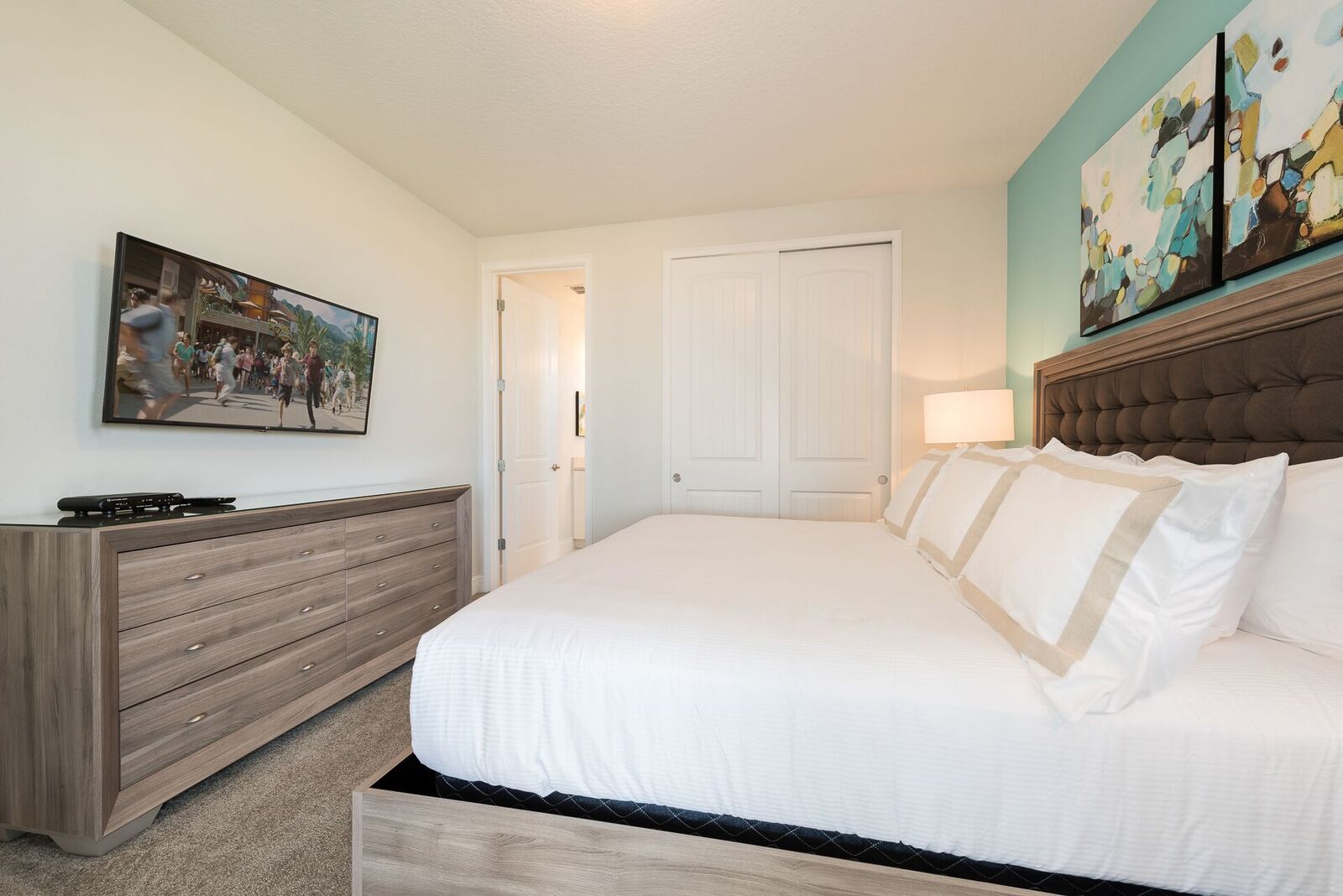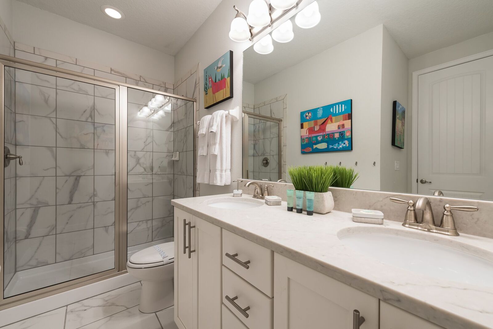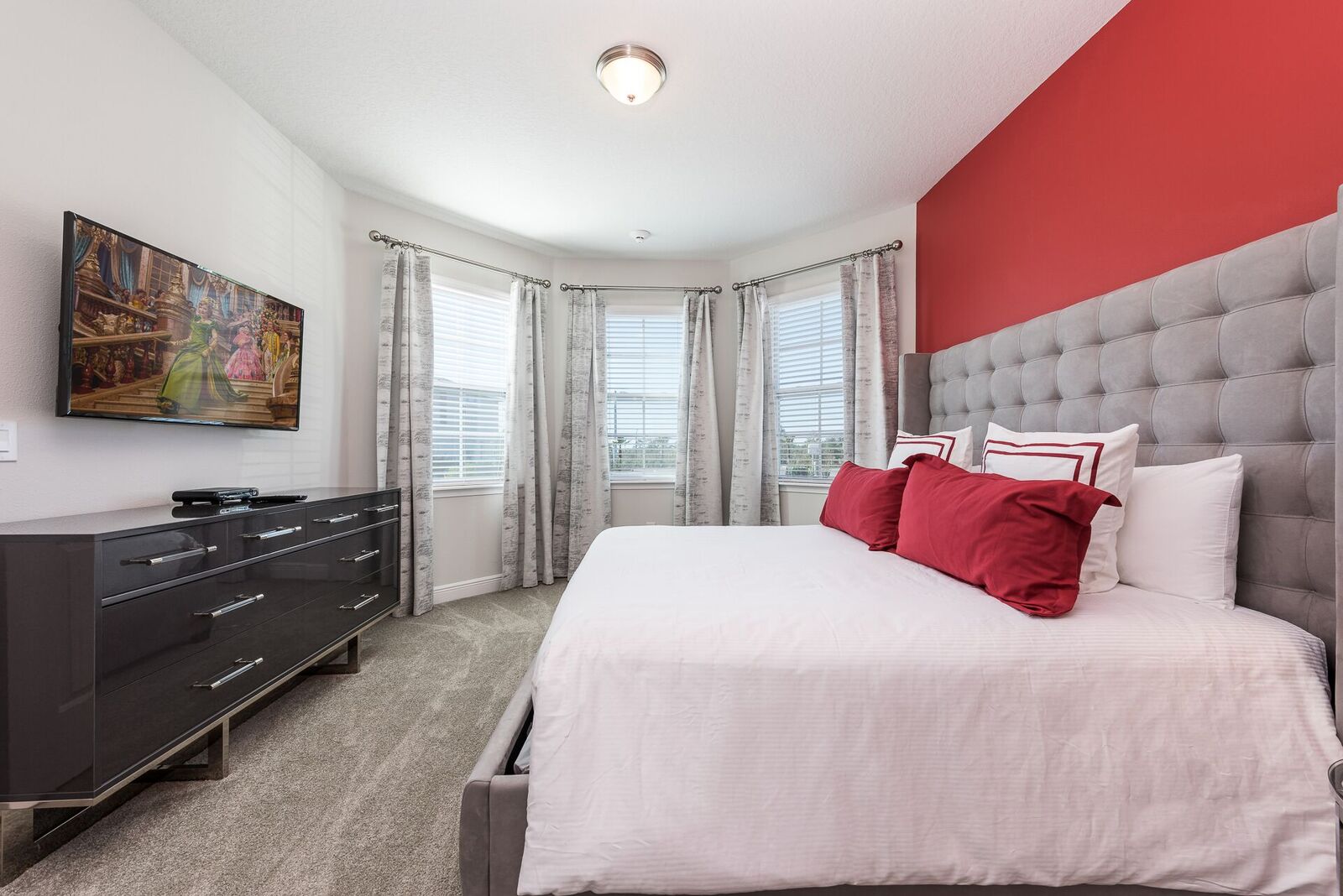 Sleeping up to 23 people, EC223 has bedrooms across both floors including 3 children's themed bedrooms such as 'Sing', 'Secret Life of Pets', and 'Tangled'! The upper floor loft area is equipped with an air hockey table and multi arcade video game as well as the games room has a ping pong table, so the fun does not have to end at the theme parks! Also the home theater is the perfect place to relax and unwind after those long theme park days and watch your favorite movie on a large projection screen in theater like recliners!