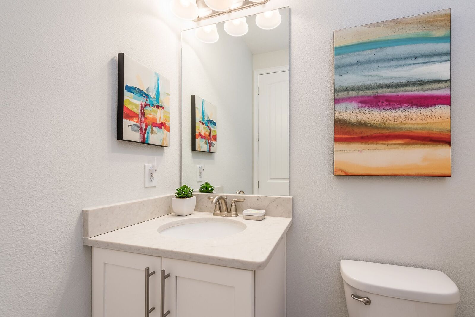 King sized Master with en suite (shower, tub, twin vanities) and patio access
