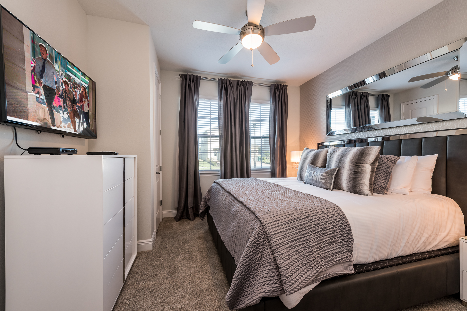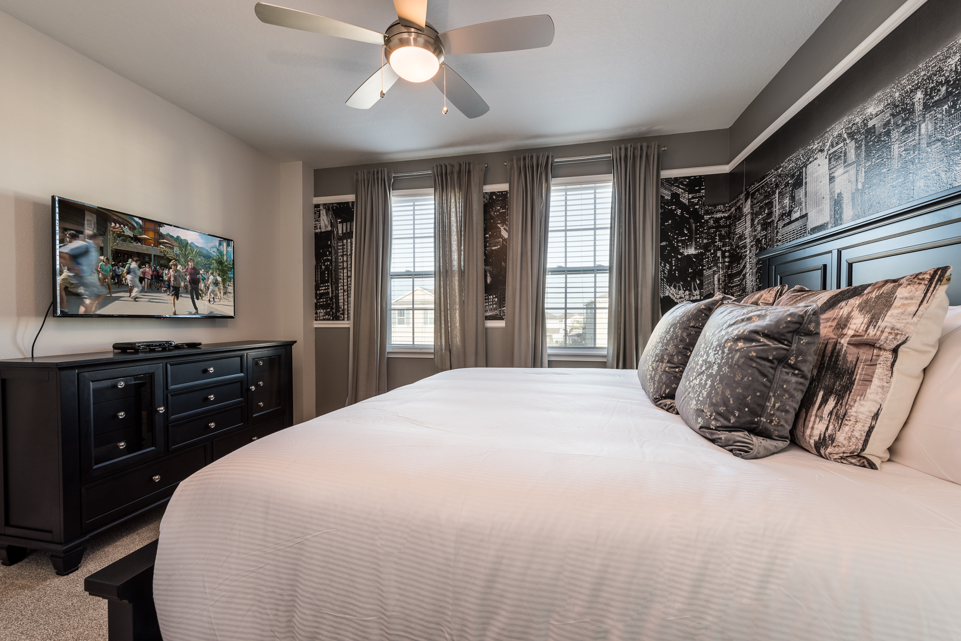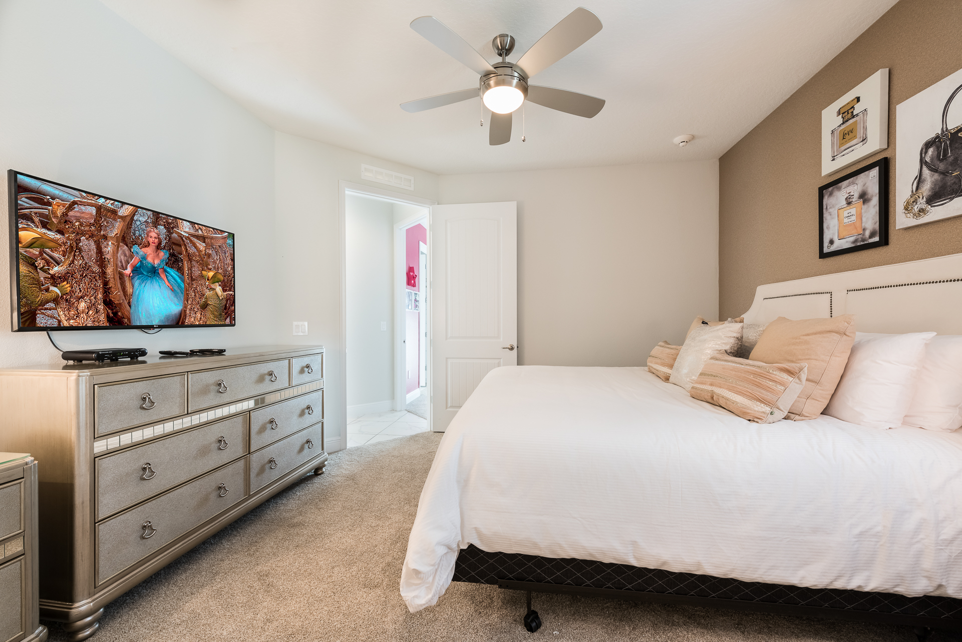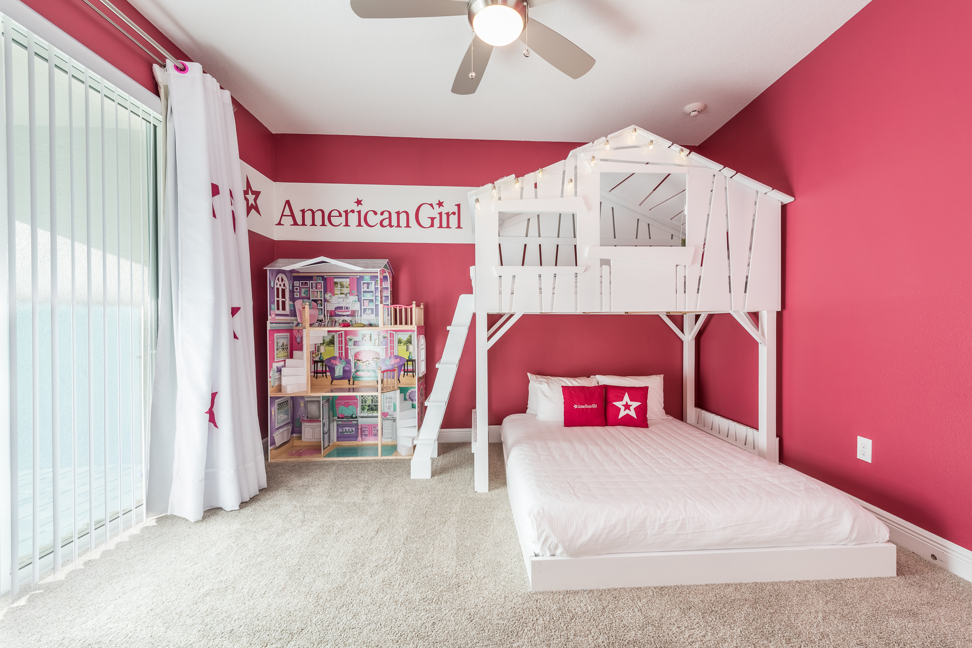 Sleeping up to 18 people, EC225 has bedrooms across both floors including 2 children's themed bedrooms! The upper floor loft area is equipped with a PS4 video game console as well as the home theater has a large projection screen for all your favorite movies , so the fun does not have to end at the theme parks!