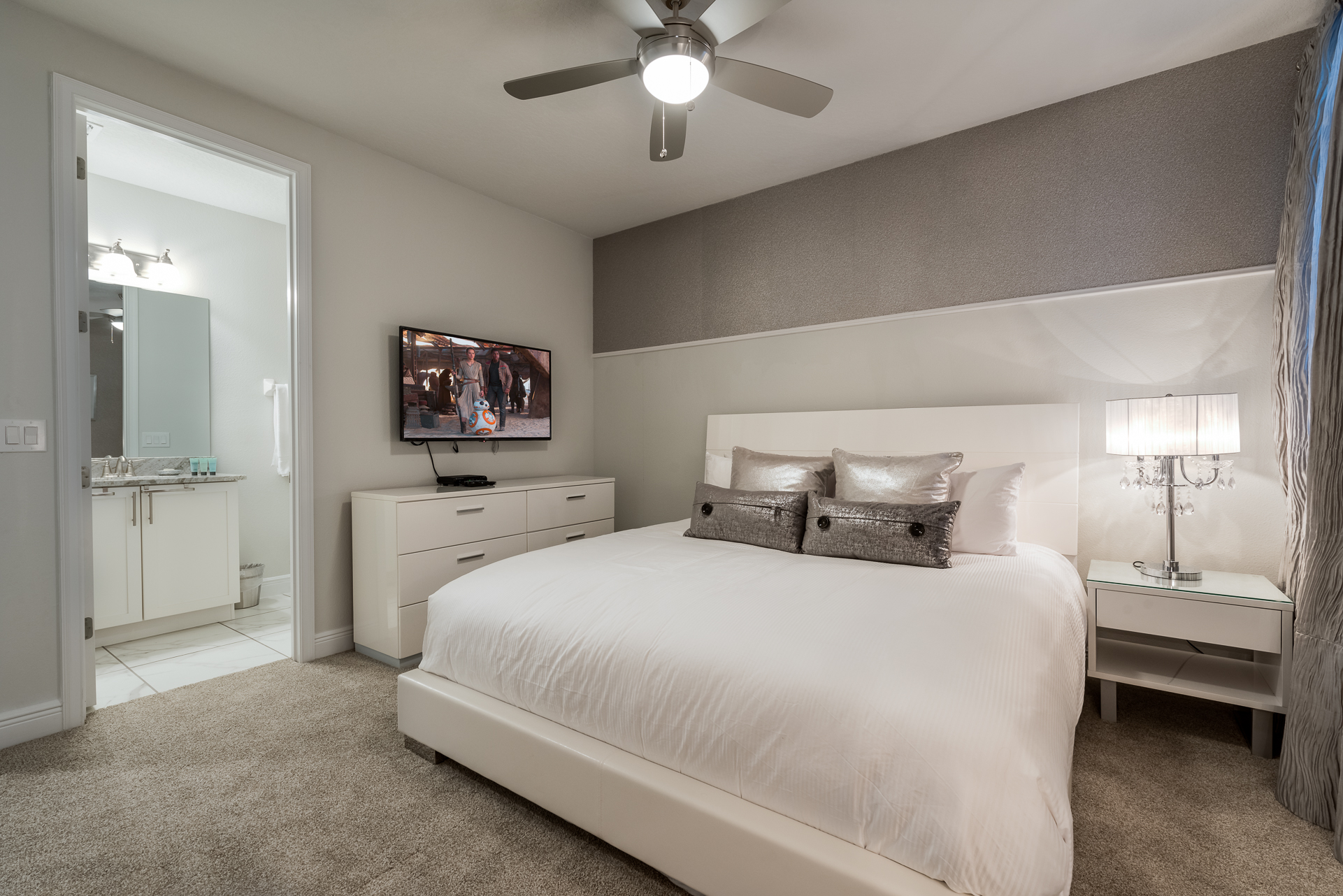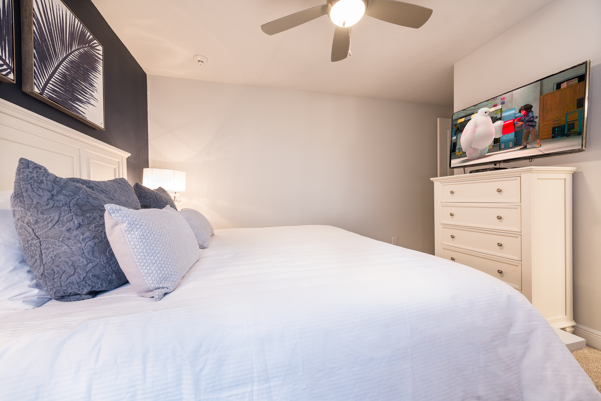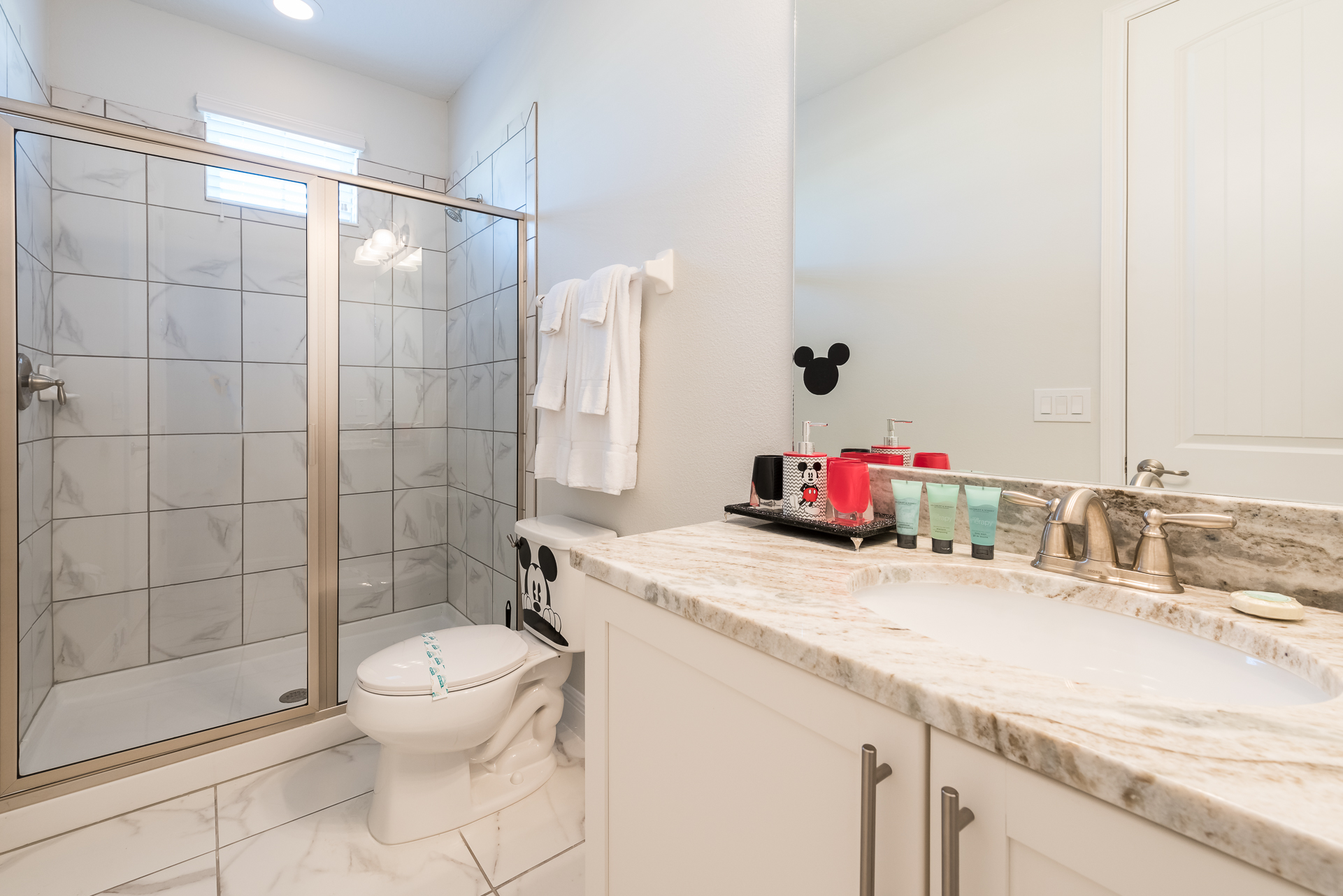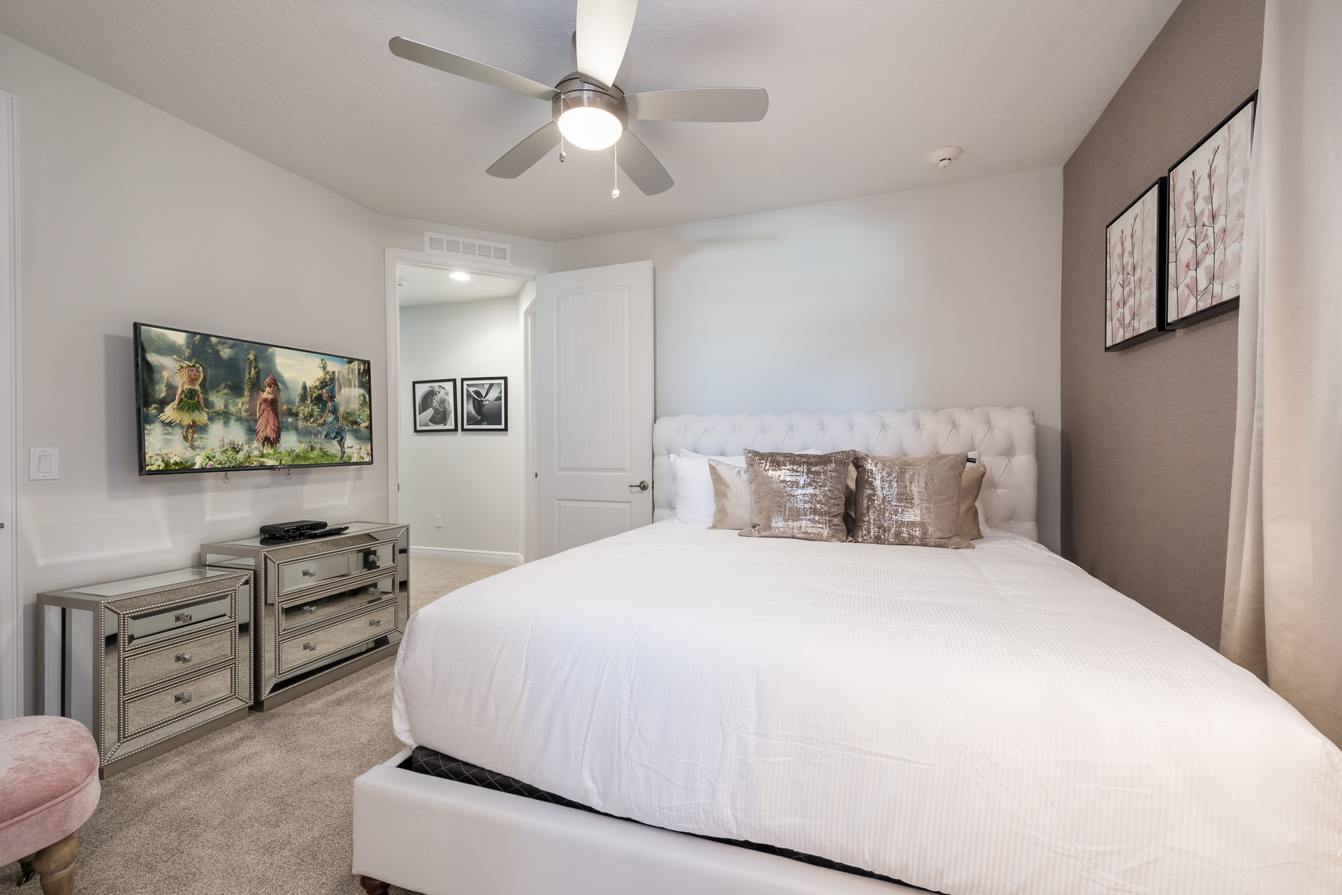 Sleeping up to 18 people, EC225 has bedrooms across both floors including 2 children's themed bedrooms! The upper floor loft area is equipped with a PS4 video game console as well as the home theater has a large projection screen for all your favorite movies , so the fun does not have to end at the theme parks!