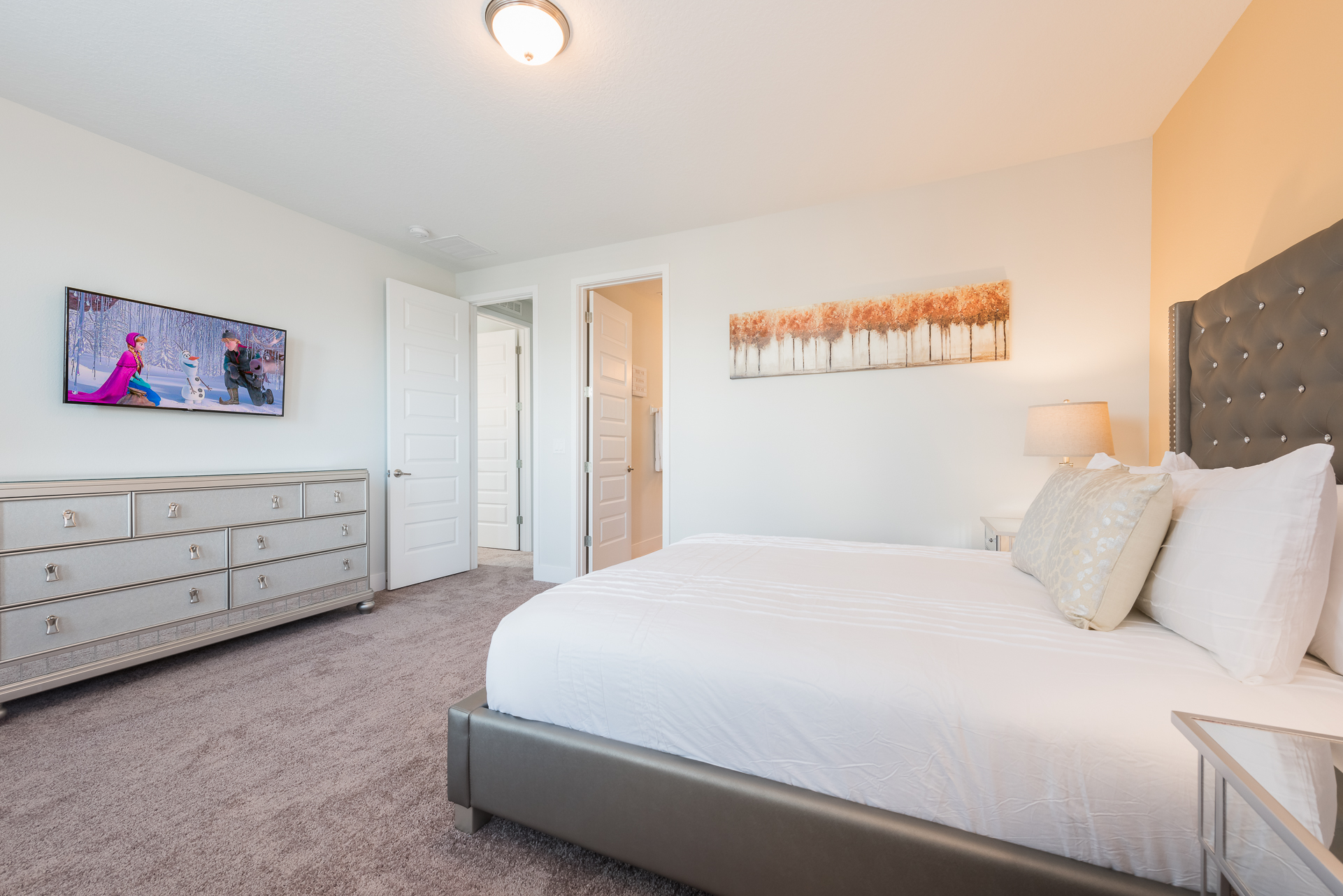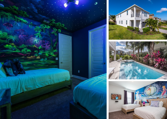 Sleeping up to 16 people, EC226 has bedrooms across both floors including 2 children's themed bedrooms such as 'Cinderella' and 'Avatar' with blacklight features! Your vacation home also has the added bonus of your very own private swimming pool and spa right outside your patio doors! The upper floor entertainment loft area is equipped with an Xbox One video game console for the whole family to enjoy as well!