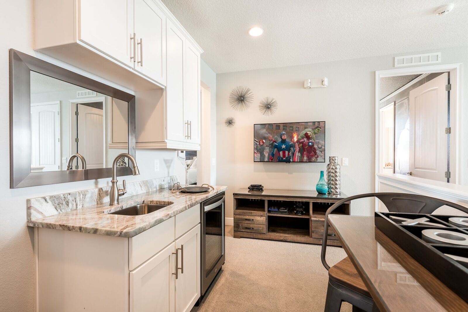 This 8 bedroom villa is located at the Encore Club, less than a 10 minute journey to Walt Disney World and their 4 incredible theme parks! Conviently located for you and your loved ones to experience and enjoy, Walt Disney World's proximity from this vacation home is an added bonus while staying on the Encore Club property! The Encore Club also offers exclusive amenities right on property including a waterpark with thrilling drop and twisting slides, multiple restaurants and bars, and an amenity center with a fitness room and kid's area!