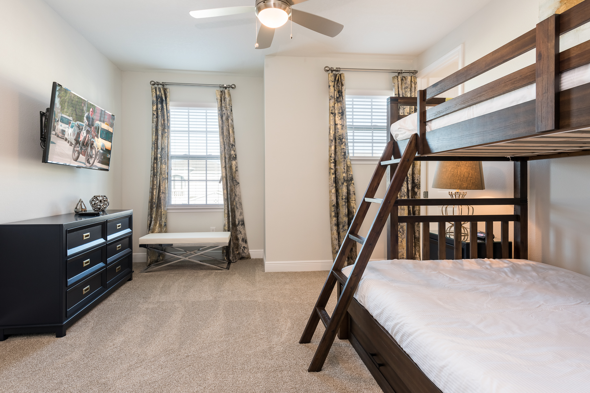 A bedroom with bunkbeds (Twin/Full sized bed) and an en suite (shower)