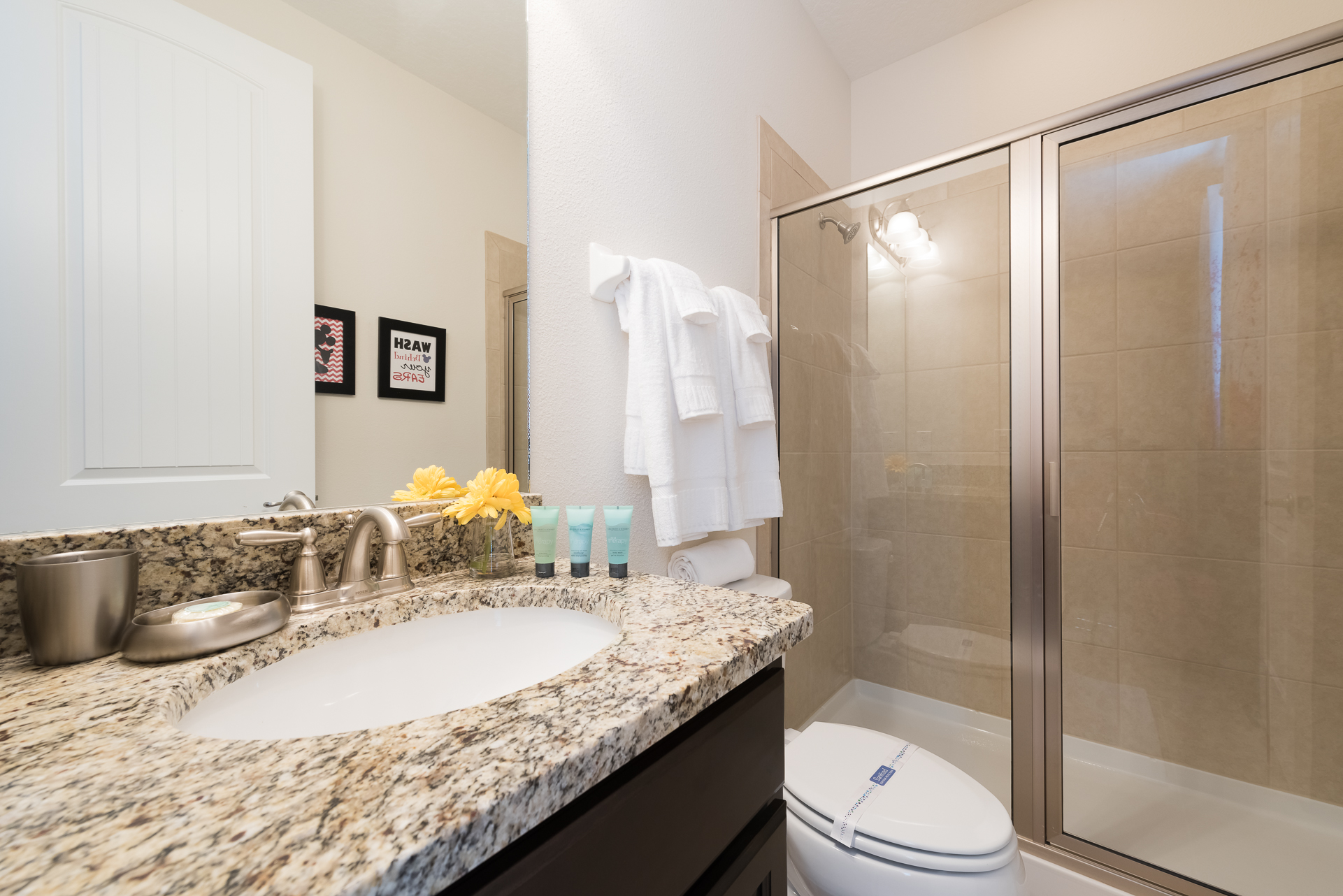 This 6 bedroom home, located at the Encore Club, is less than a 10 minute journey down the road to Walt Disney World and their 4 incredible theme parks! Conviently located for you and your loved ones to experience and enjoy, Walt Disney World's proximity from this vacation home is an added bonus while staying on the Encore Club property! The Encore Club also offers exclusive amenities right on property including a waterpark with thrilling drop and twisting slides, multiple restaurants and bars, and an amenity center with a fitness room and kid's area!