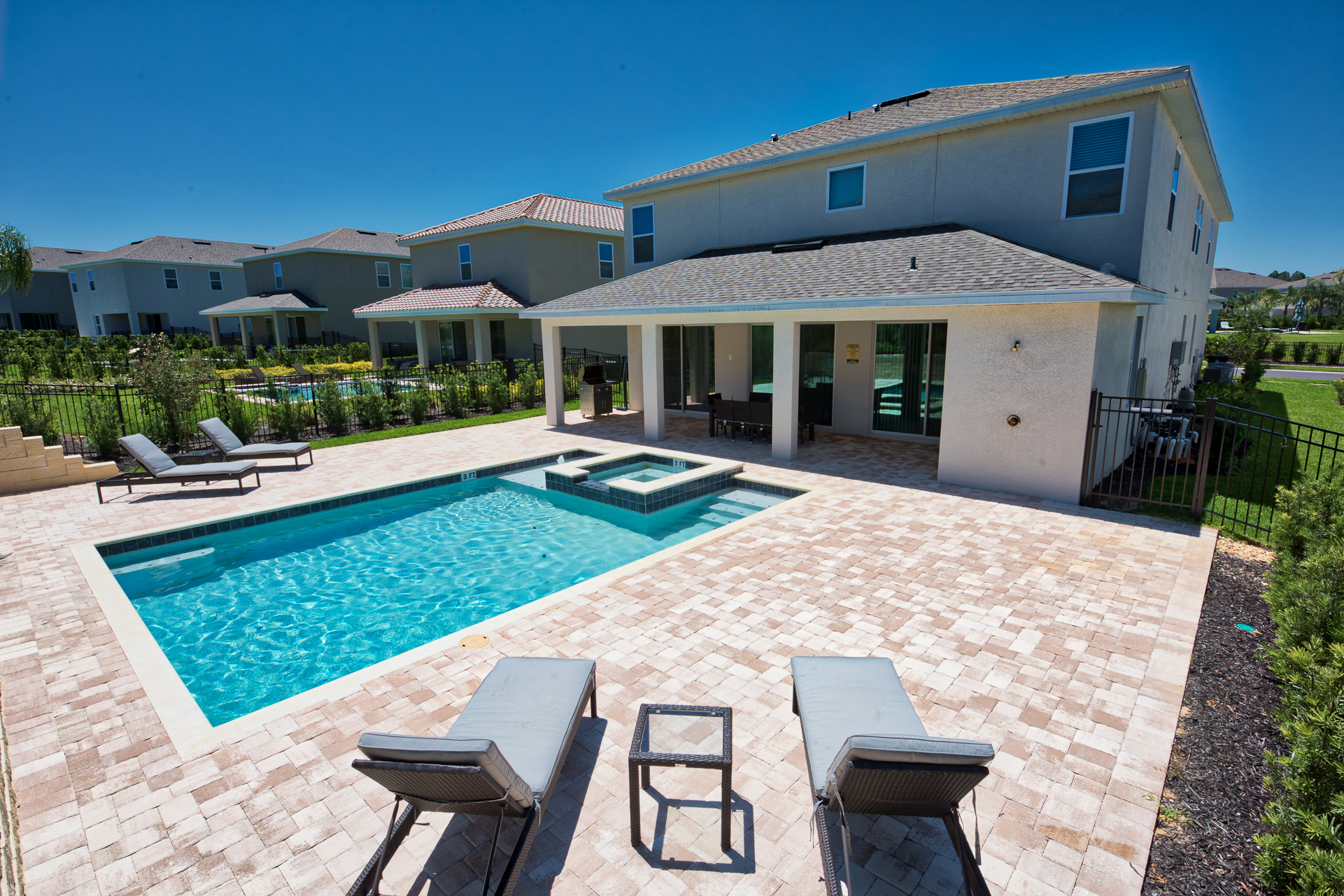 You and your family also have the added luxury of your very own large private pool deck and spillover spa right outside your patio doors to enjoy Florida's sunshine and warm weather!