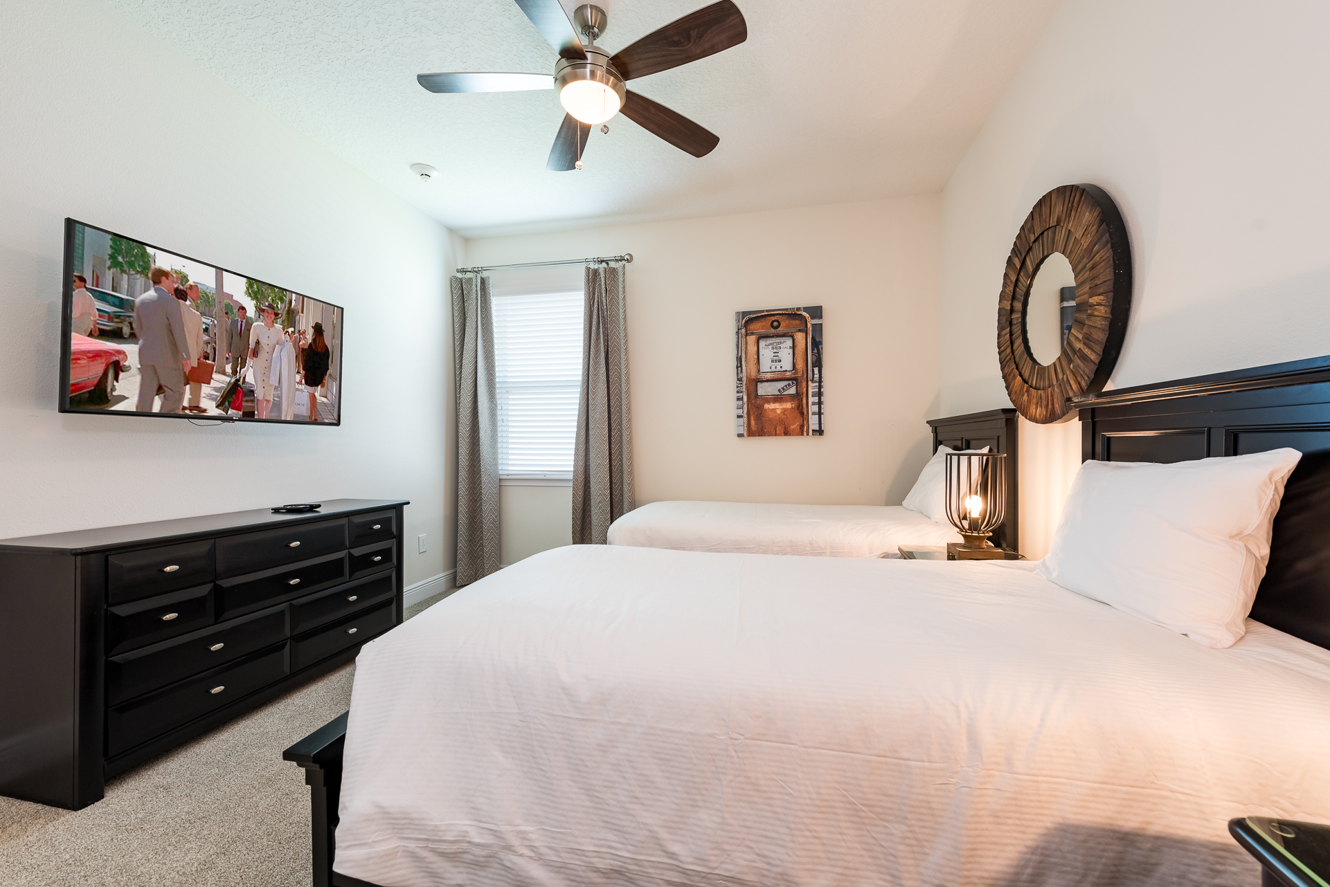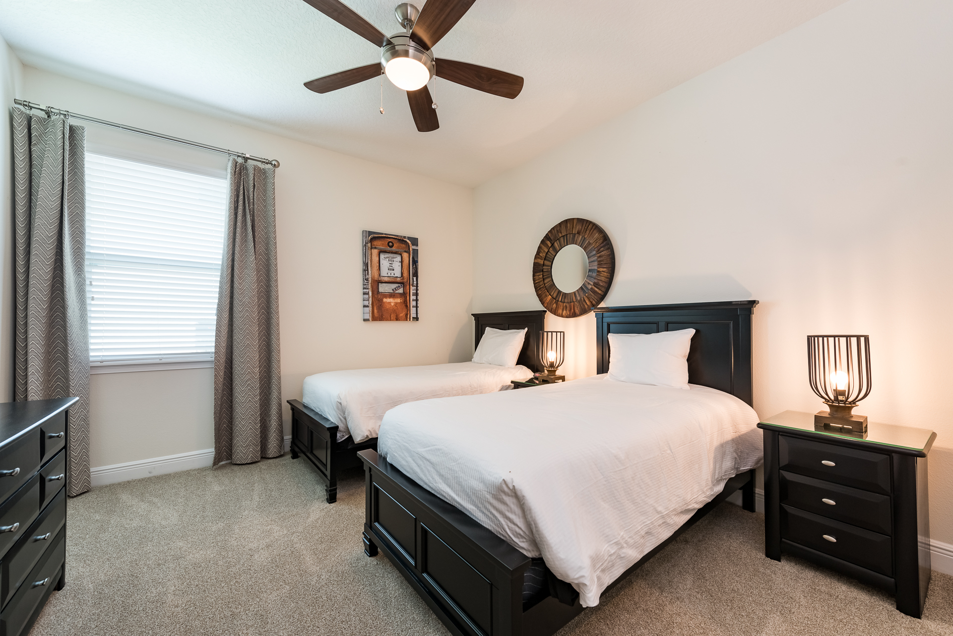 A bedroom with 2x Twin sized beds