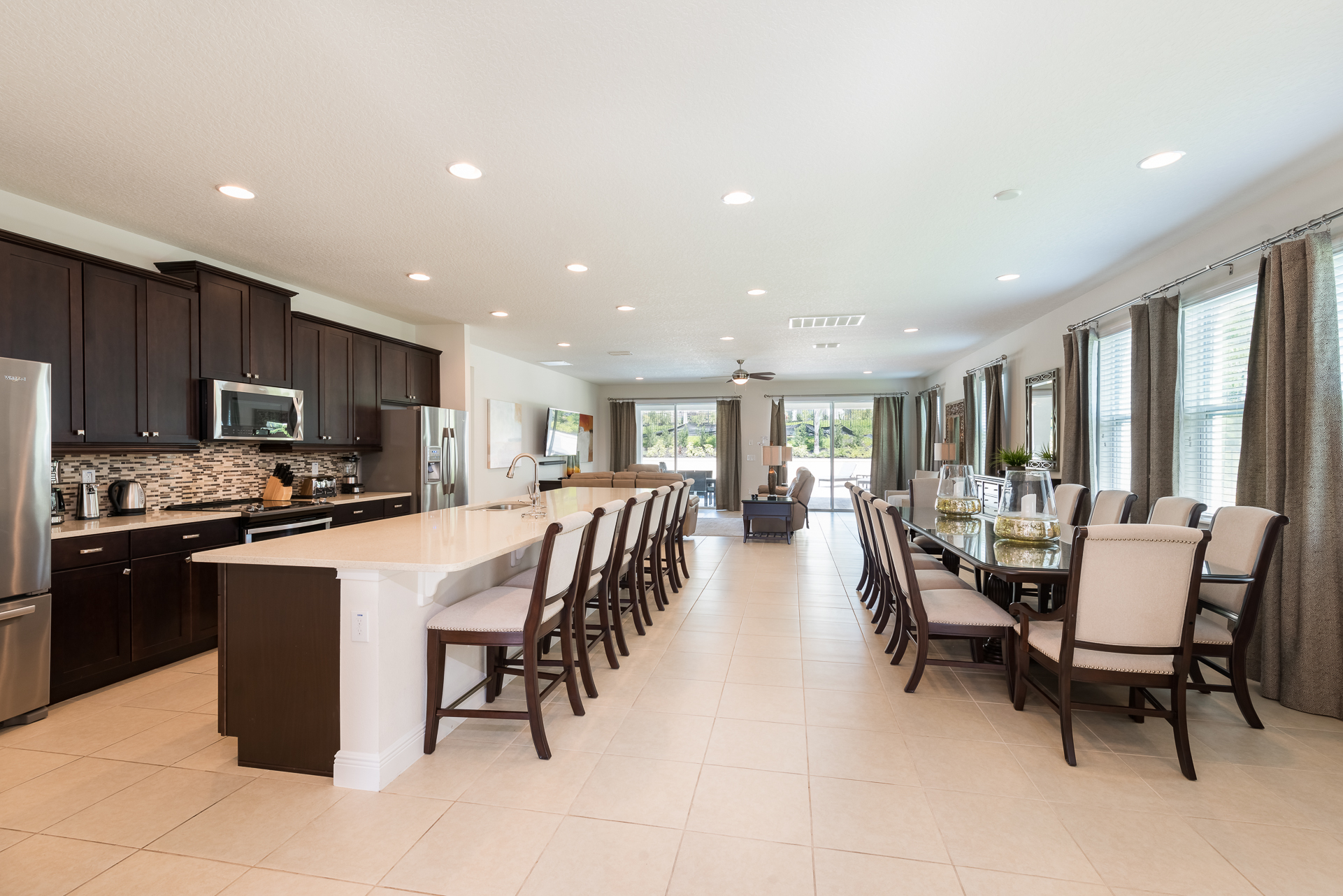 This 9 bedroom villa is located at the Encore Club, less than a 10 minute journey to Walt Disney World and their 4 incredible theme parks! Conviently located for you and your loved ones to experience and enjoy, Walt Disney World's proximity from this vacation home is an added bonus while staying on the Encore Club property! The Encore Club also offers exclusive amenities right on property including a waterpark with thrilling drop and twisting slides, multiple restaurants and bars, and an amenity center with a fitness room and kid's area!