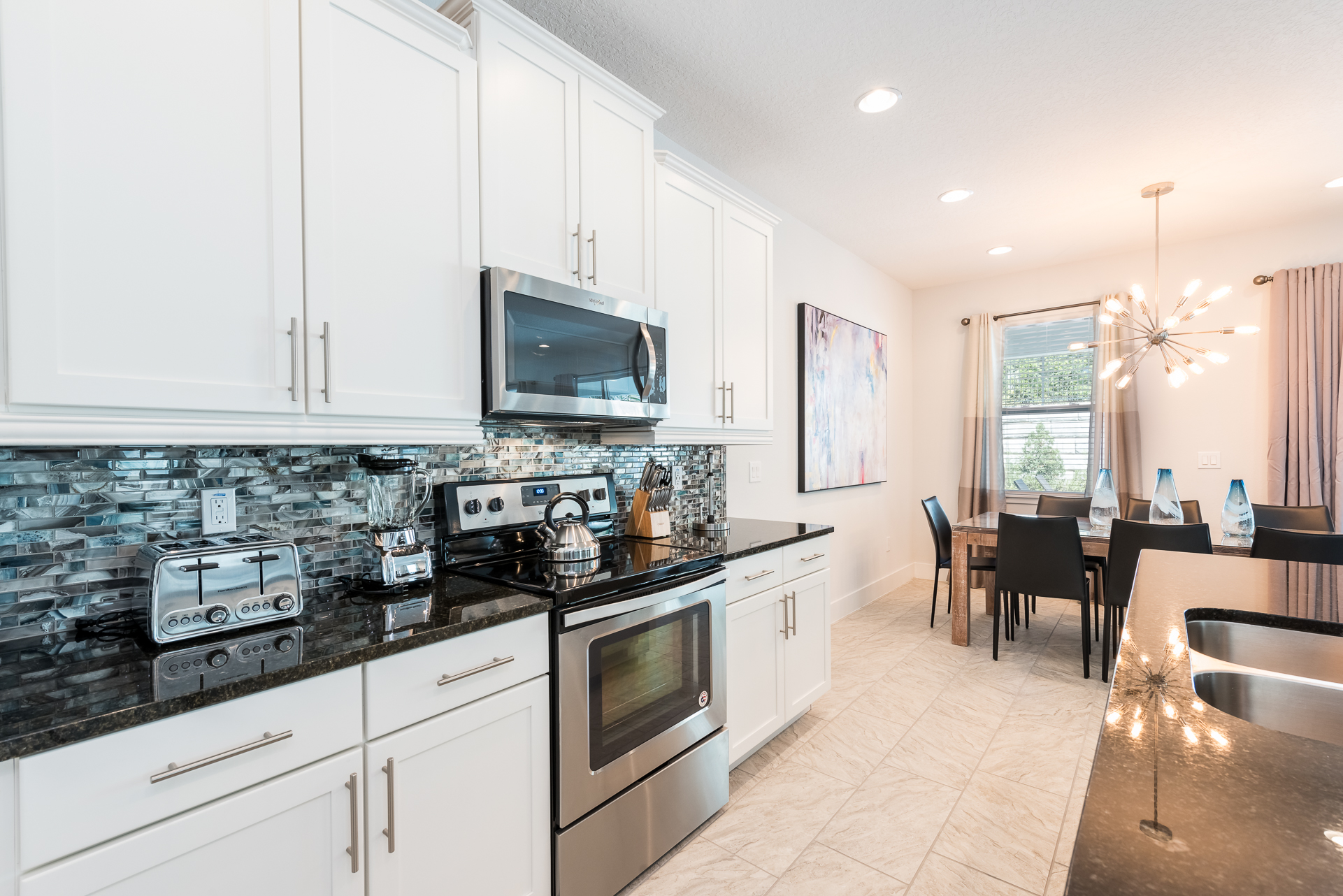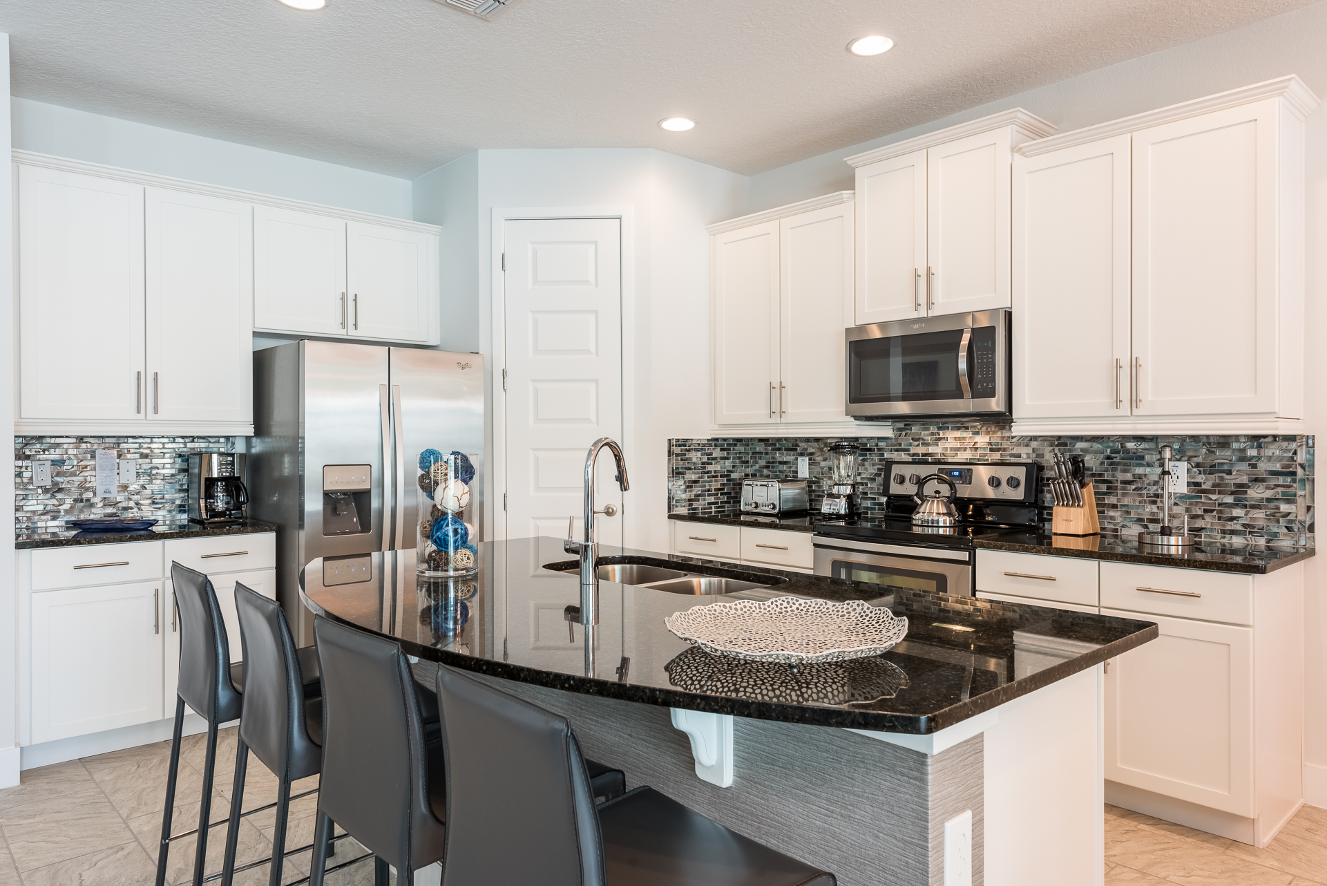 Fully equipped with a black granite 4 seat island style breakfast bar