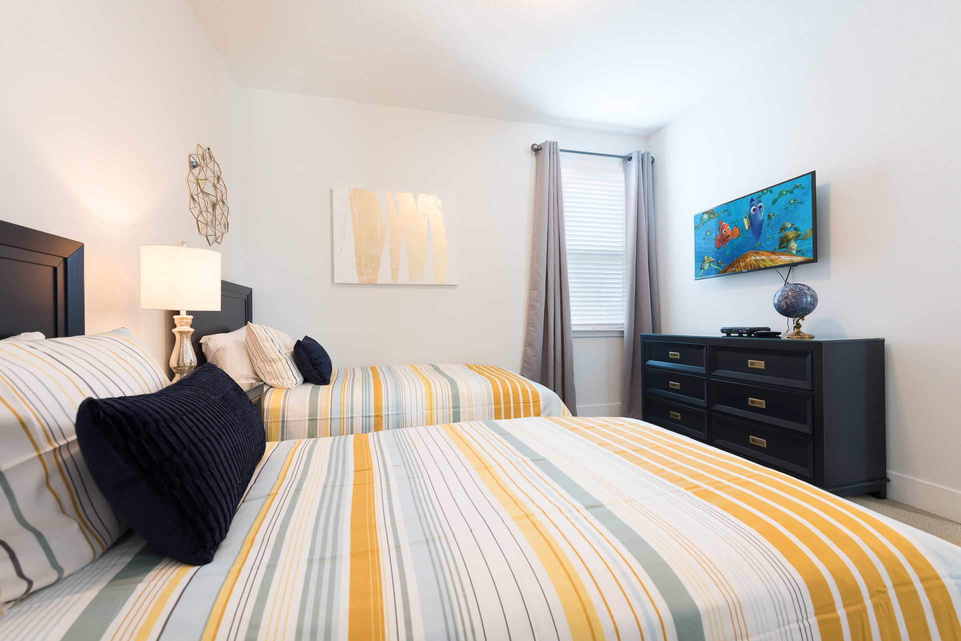 Sleeping up to 8 people, EC243 has bedrooms across both floors including a children's themed bedroom and is furnished with a modern twist! The games room is equipped with a foosball and ping pong table as well the upper floor loft area has a flat screen TV and large leather sectional so the fun does not have to end at the theme parks!