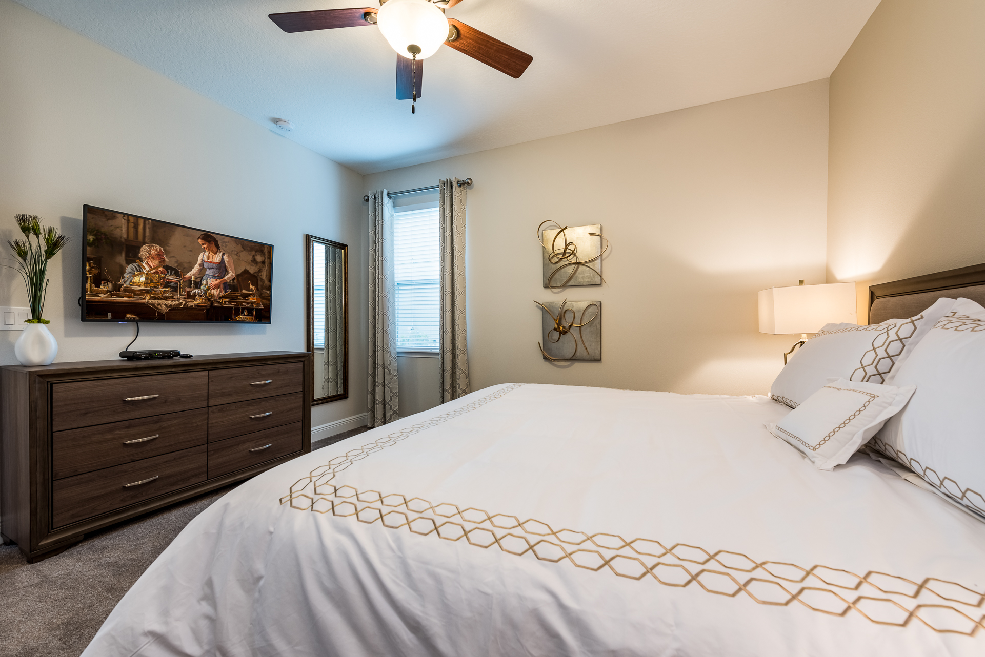 This 6 bedroom home is located at the Encore Club, about a 10 minute journey down the road to Walt Disney World! You and your loved ones can experience and enjoy 4 incredible theme parks as well as exclusive amenities on property including a waterpark with thrilling water slides, multiple bars and restaurants, and an amenity center with a gym and kid's center!