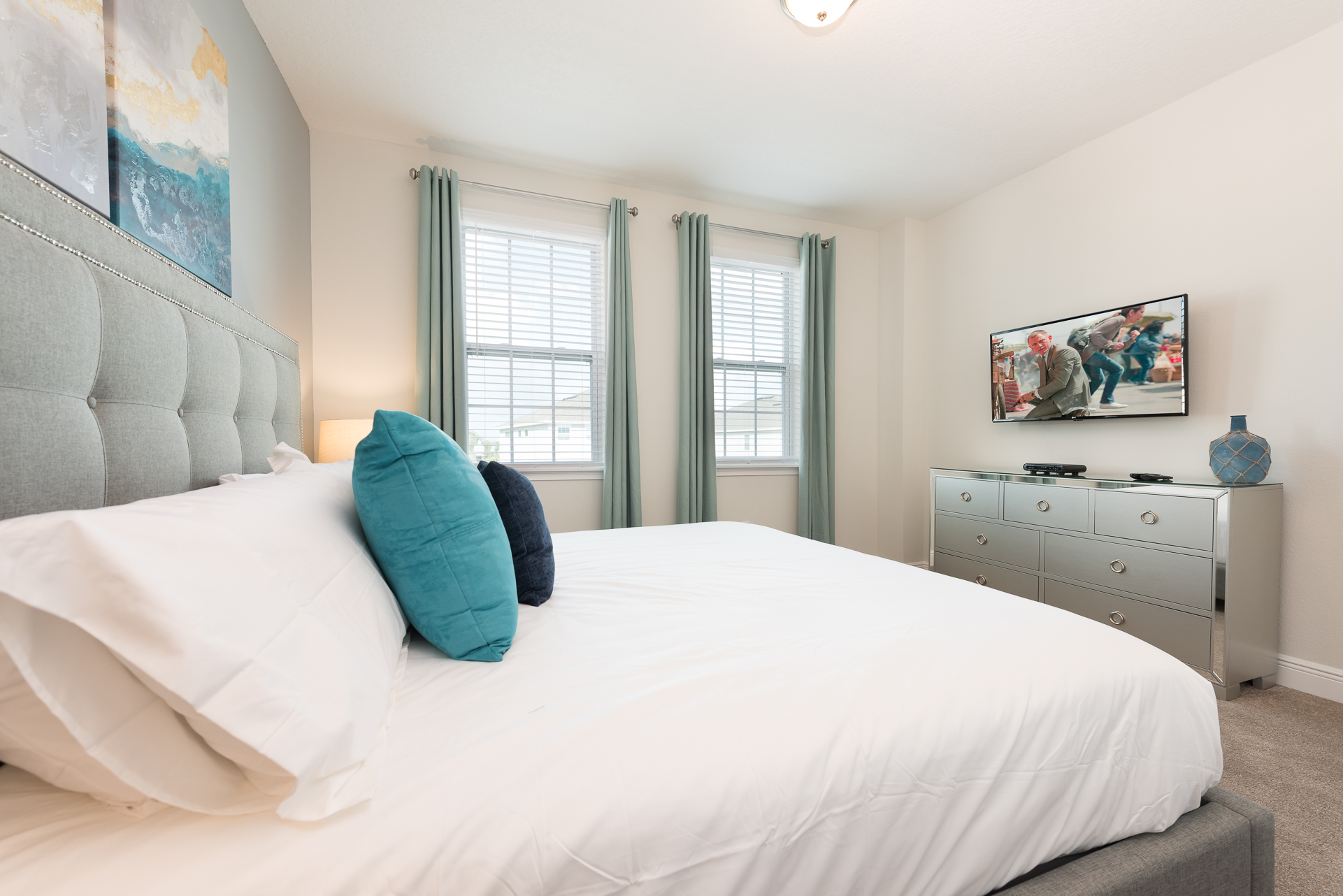 King sized Master with en suite/pool access bathroom (shower, tub, twin vanities) and patio access