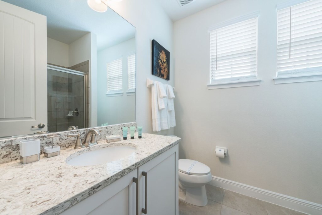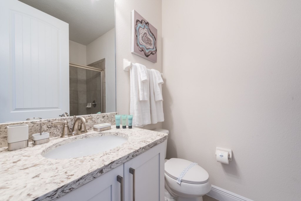 This 6 bedroom villa is located at the Encore Club, less than a 10 minute journey to Walt Disney World! Their 4 incredible theme parks are conviently located for you and your loved ones to experience and enjoy all while on vacation in the heart of Orlando! The Encore Club also offers exclusive amenities right on property including a waterpark with thrilling drop and twisting slides, multiple restaurants and bars, and an amenity center with a fitness room and kid's area!