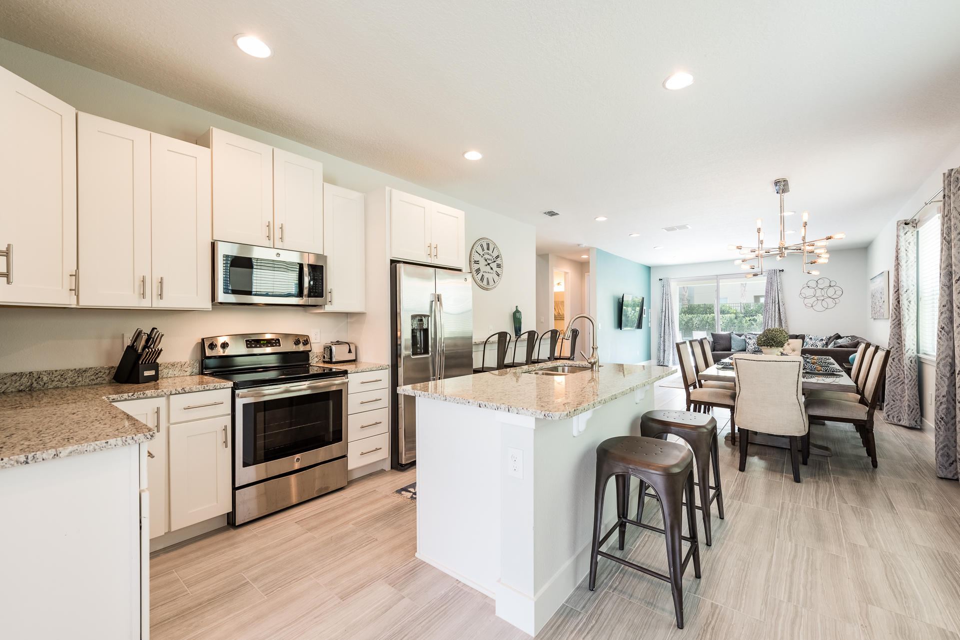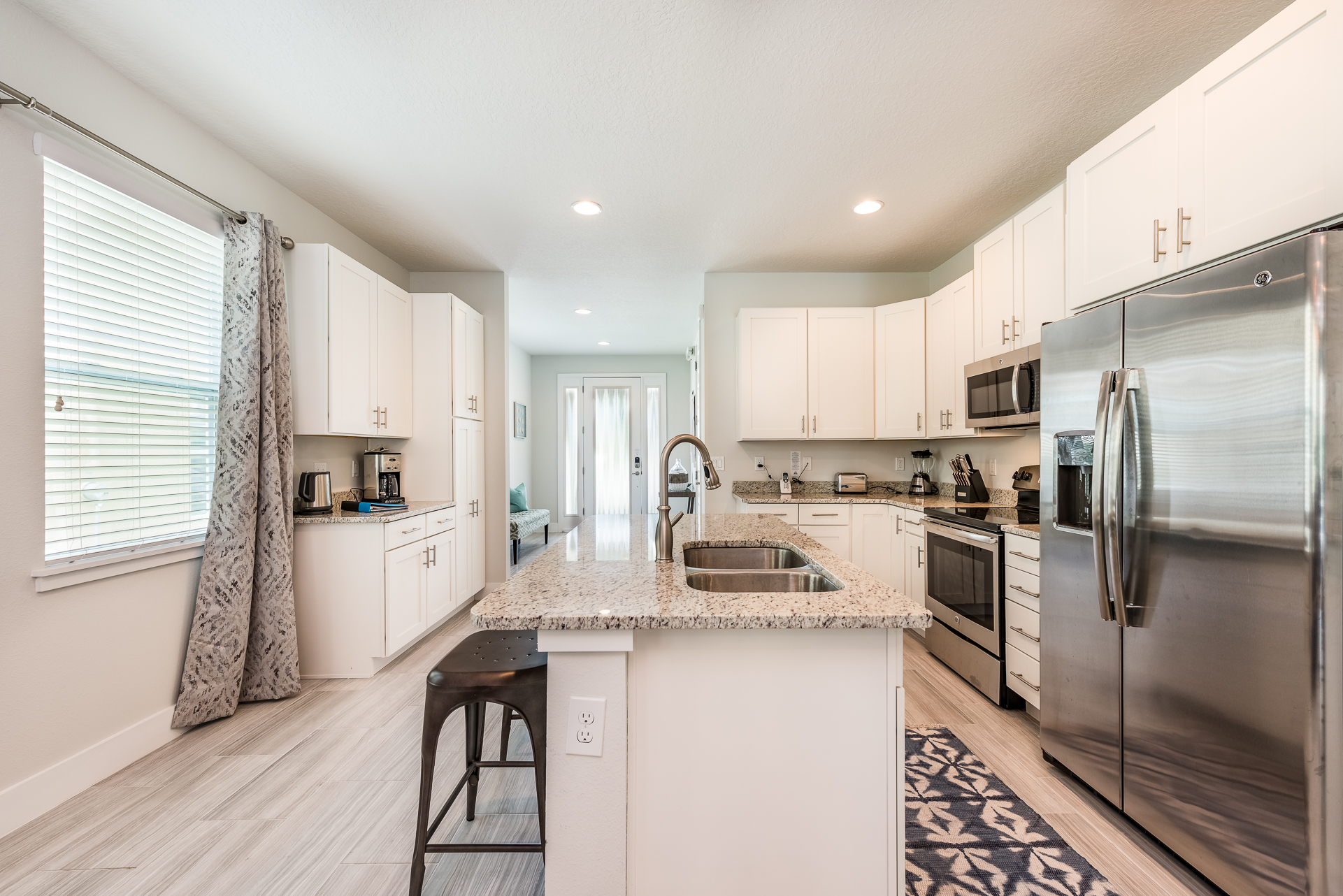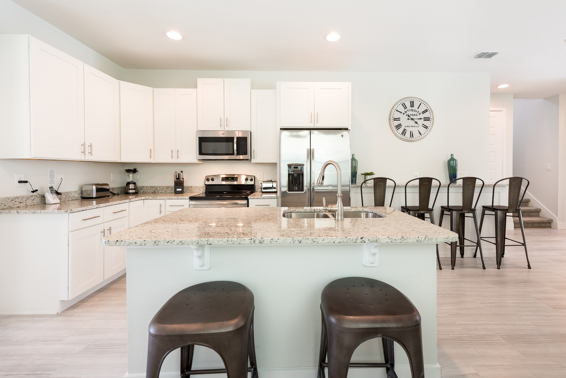 Fully equipped with a granite island with 2 seats and a 4 seat breakfast bar