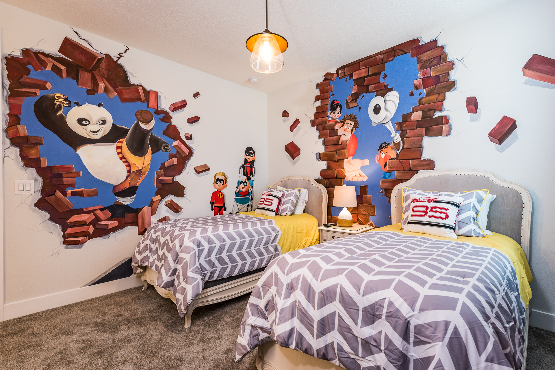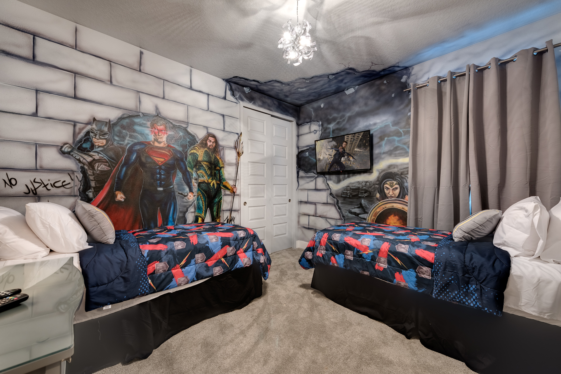 Themed bedroom with 2x Twin sized beds and an en suite (shower)