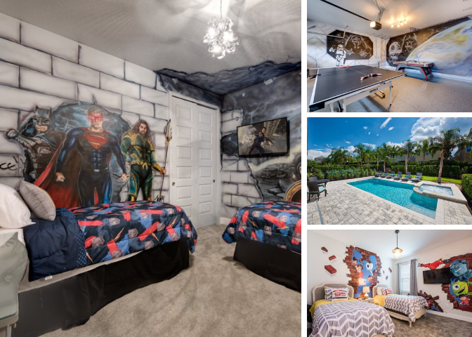 The entertainment does not end at the theme parks when your vacation home is equipped with a themed games room including a ping pong and air hockey table as well as a themed loft area with a X-Box One and Sony Playstation video game consoles for the whole family to relax and enjoy!