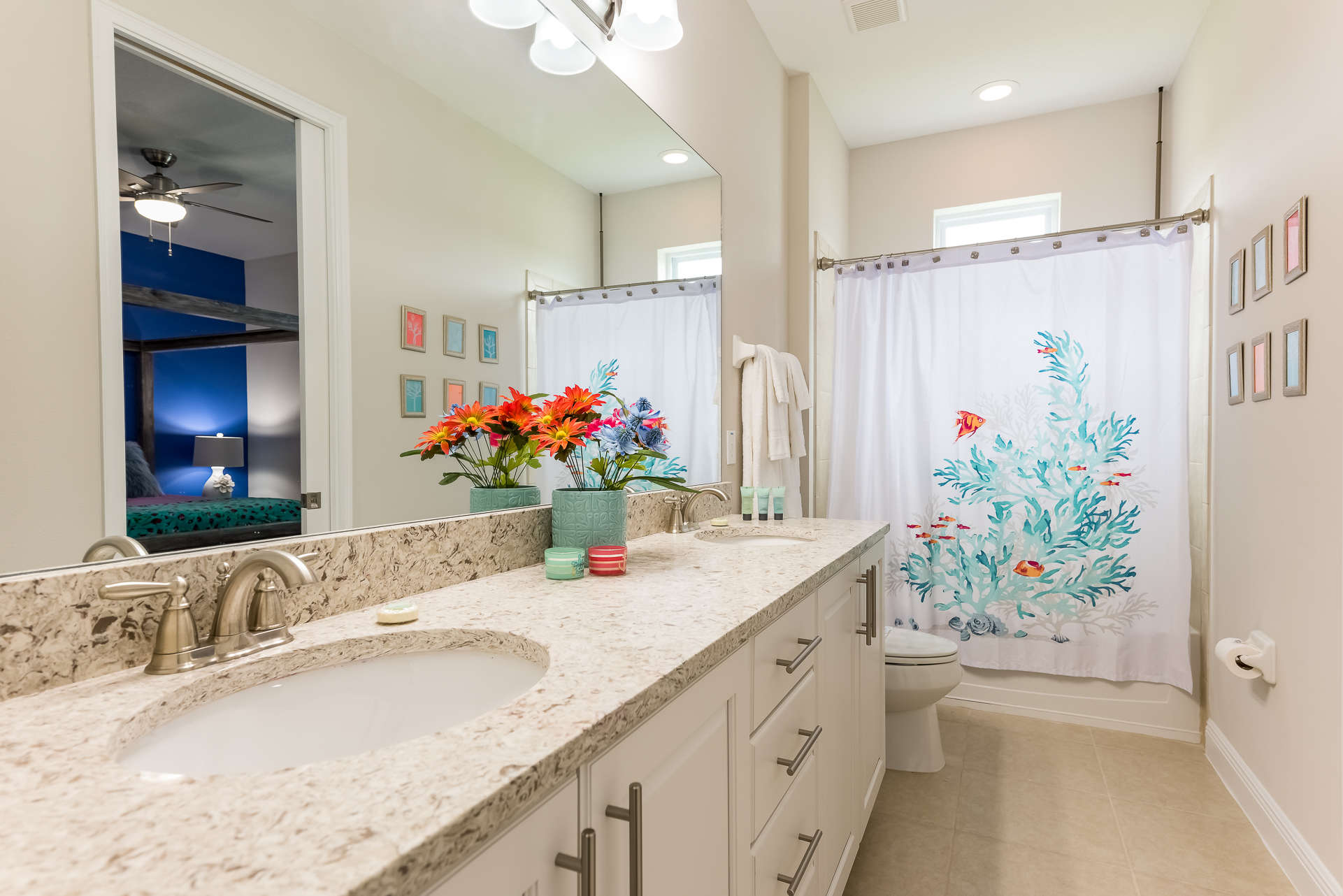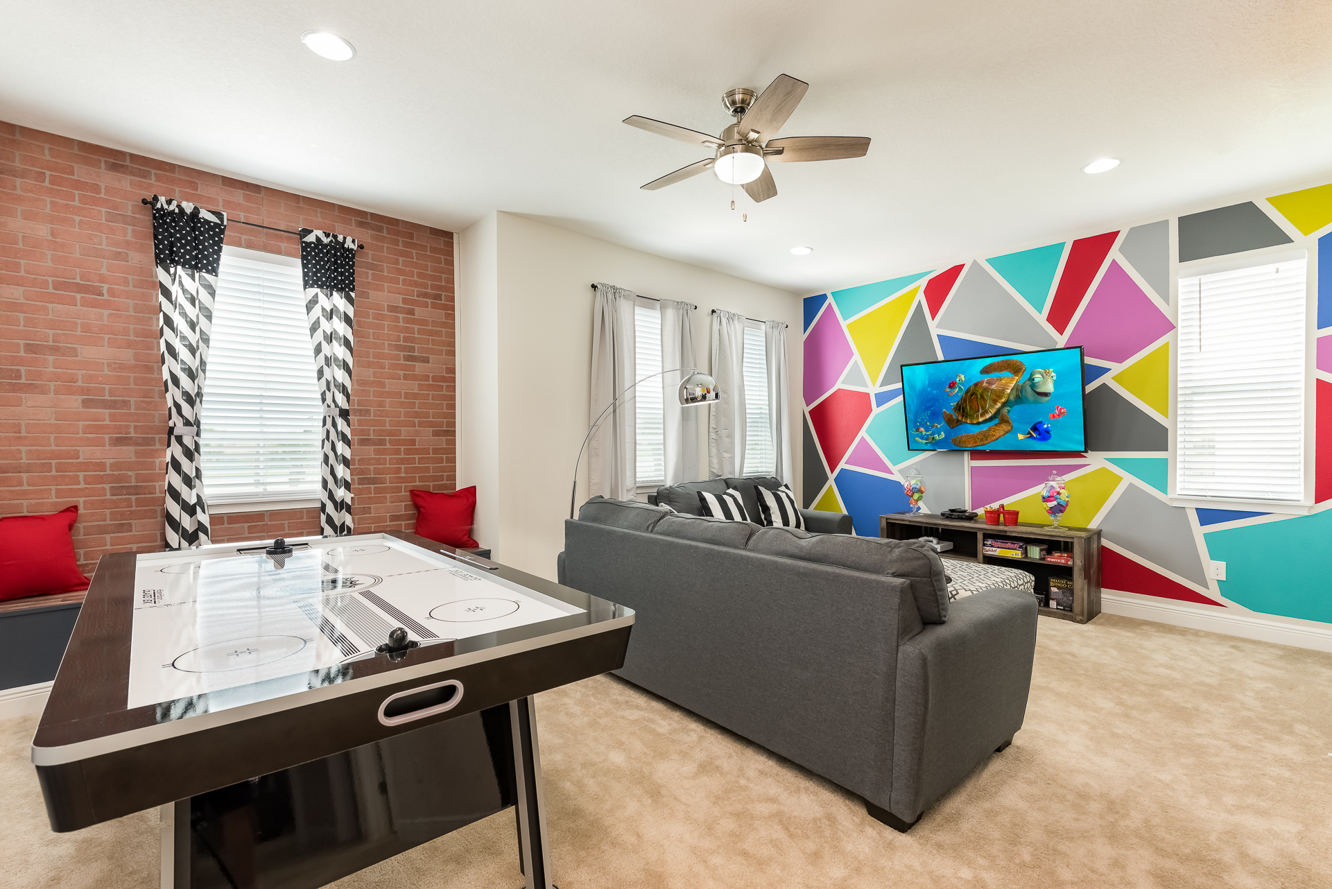 Sleeping up to 10 people, EC256 has bedrooms across both floors including a children's themed bedroom! The upper floor loft area is equipped with an X-Box One video game console as well as a ping pong table that also converts into an air hockey table, so the fun does not have to end at the theme parks!