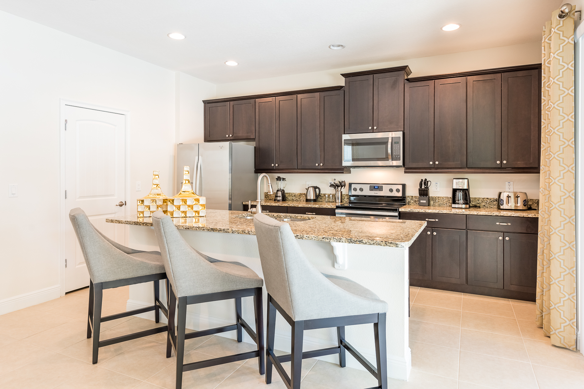 Fully equipped with a granite 3 seat island style breakfast bar